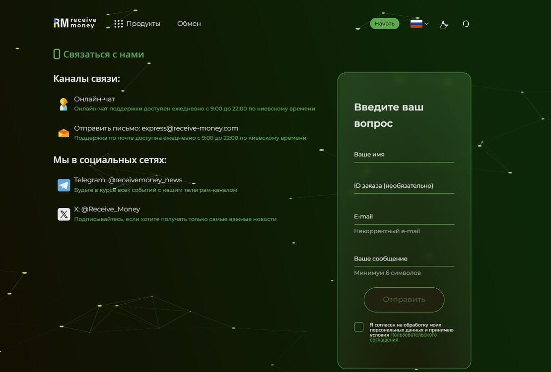 Receive-Money هي خدمة لتبادل العملات الرقمية مناسبة للعمليات الأساسية “كريبتو ↔ كريبتو” و“كريبتو ↔ فيات”. الهدف العملي الرئيسي من هذه المنصات هو تحويل الأصول الشائعة بسرعة، ونقل الأموال بين المحافظ، أو سحب جزء من الرصيد إلى البيانات البنكية دون استخدام منصات التداول والواجهات المعقدة الخاصة بالبورصات.