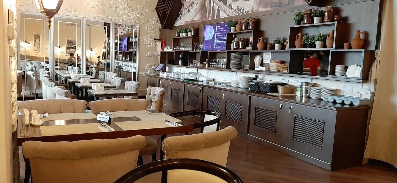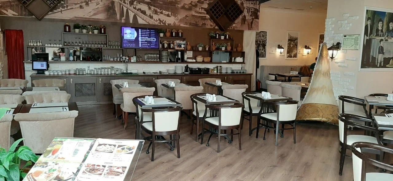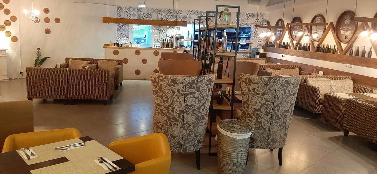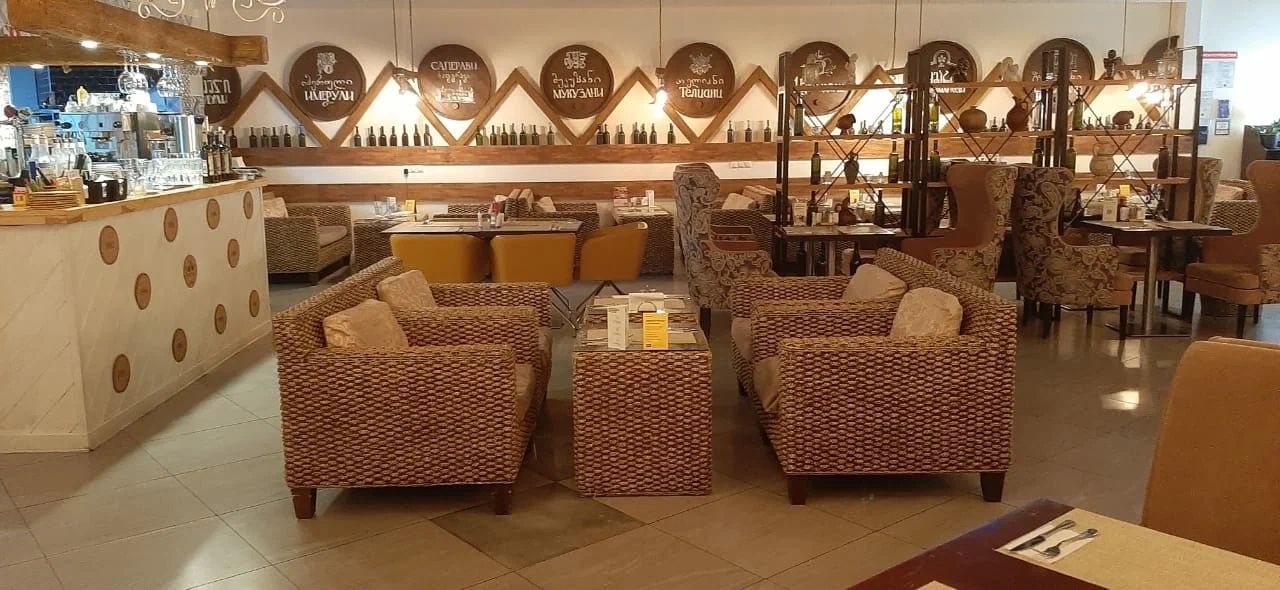 قائمة الطعام مبنية على الأطباق الجورجية الرئيسية. يُحضّر الخينكالي بحشوات متنوعة؛ ويُكمّل هذا الطبق الخاتشابوري (إيمرولي، ميجرولي، أدجارولي)، والشاشليك/المتسفادي، والأطباق المطهوة على نار هادئة، واللوبيو، والبخالي، والسلطات الموسمية مع صلصات المكسرات. أما الأطباق الرئيسية فتشمل أطباق اللحوم والخضراوات الغنية بالعصارة، بينما تُقدّم الحساء خيارات غنية تُميّز مطبخ المنطقة. تشمل المشروبات عصير الليمون محلي الصنع، والشاي، وقائمة قهوة؛ كما تتوفر قائمة نبيذ. تشمل خيارات الخدمة تناول الطعام في المطعم، والطلبات الخارجية، والتوصيل.