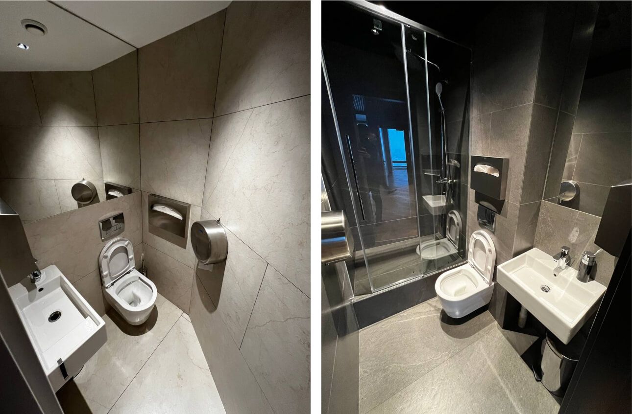 تشمل البنية التحتية للمكتب جميع المرافق اللازمة للعمل المريح: مطبخ صغير للاستراحات، وثلاثة حمامات مزودة بدُش، وخزانة ملابس واسعة لراحة الموظفين. كما تم توفير الأثاث، بما في ذلك المكاتب والكراسي، لضمان الراحة وسير العمل بشكل احترافي.