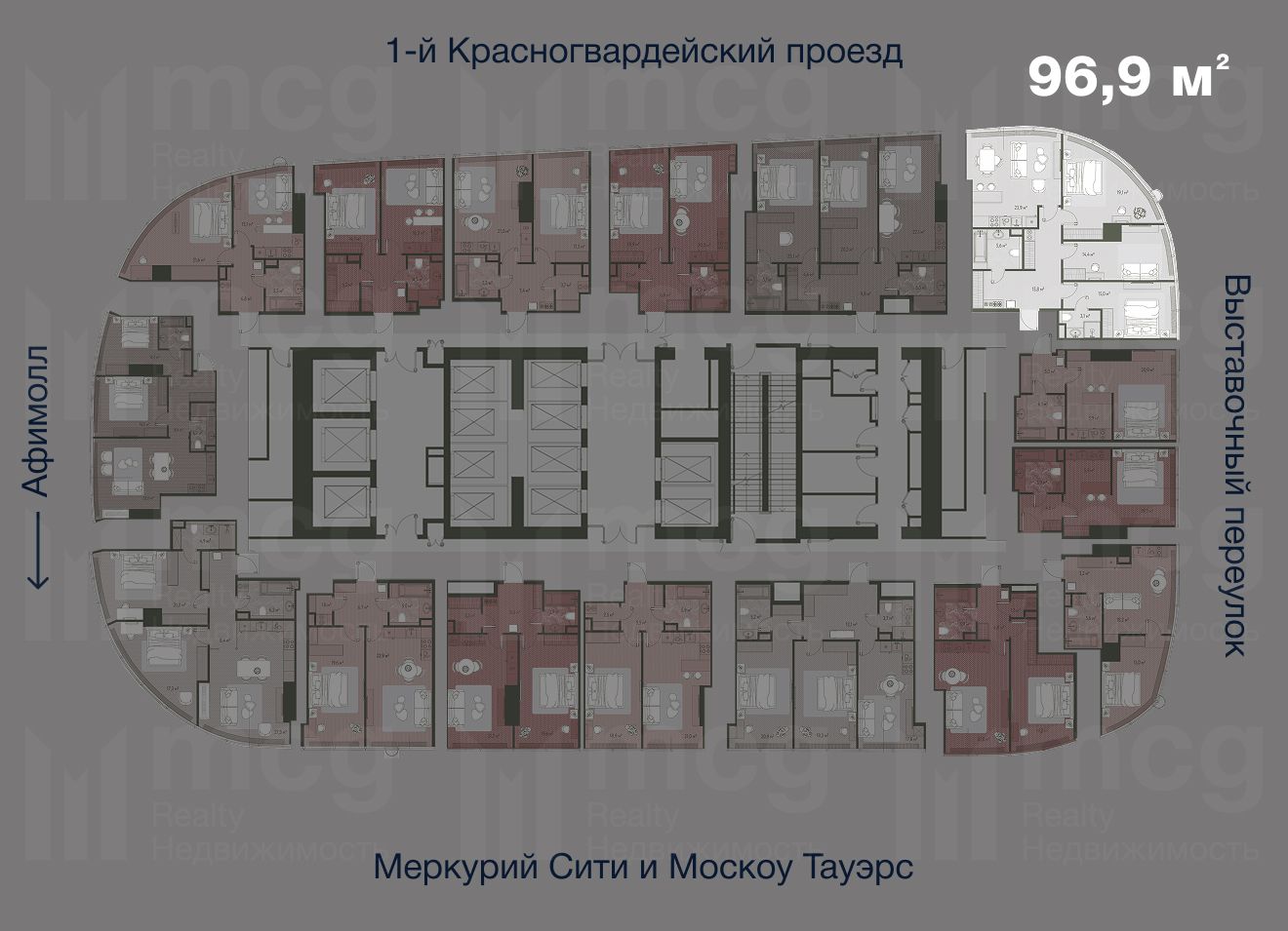عرضٌ فريدٌ في ناطحة السحاب السكنية "ون تاور"، قيد الإنشاء حاليًا، والتي ستصبح أطول مبنى سكني في أوروبا ومشروعًا بارزًا في مدينة موسكو. صُمم البرج من قِبل شركة جينبرو المعمارية، بمشاركة كبير المهندسين المعماريين في موسكو، وتُطوّره مجموعة إم آر.