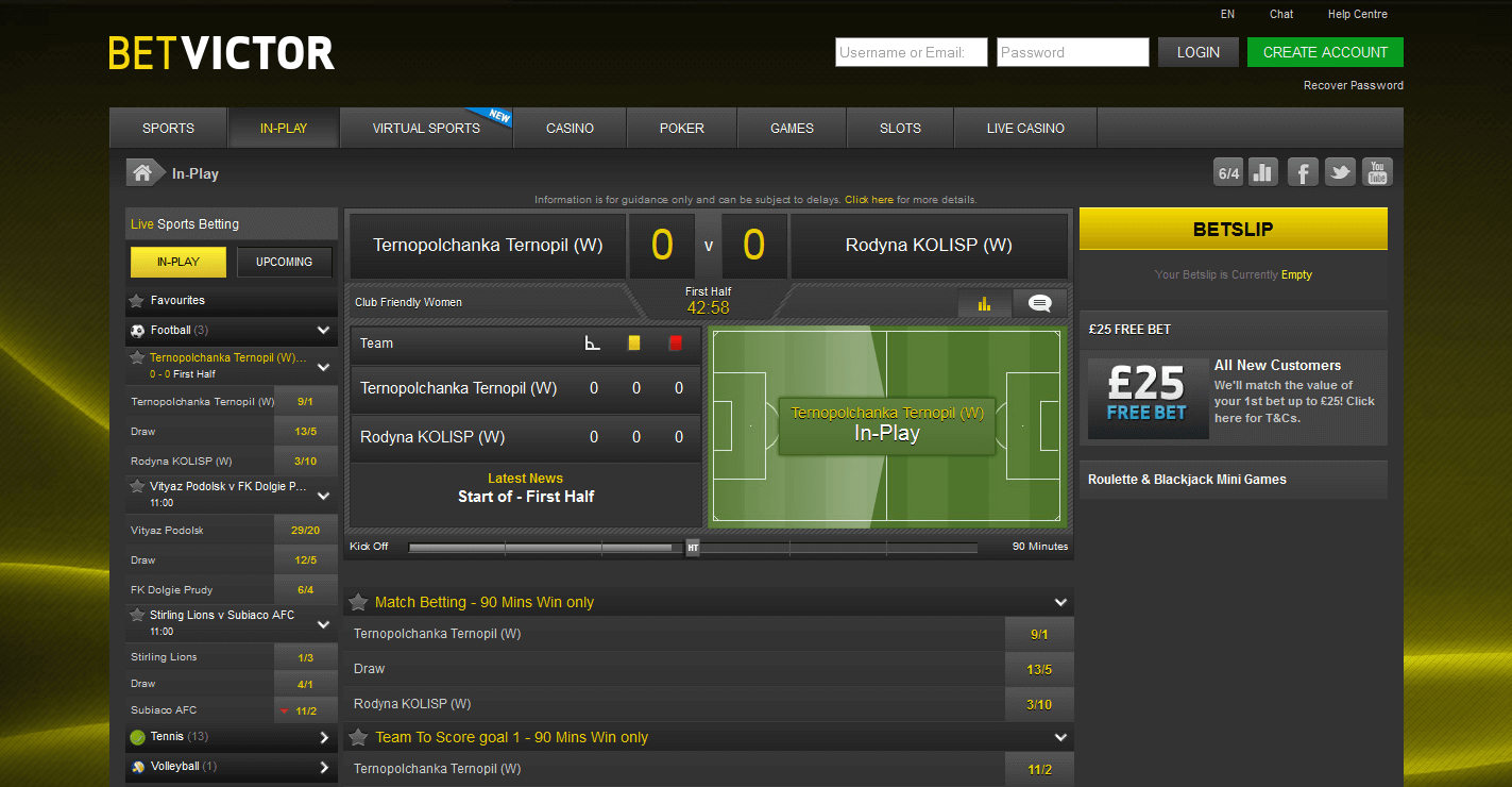 تُصنّف تشكيلة BetVictor واحتمالاتها ضمن المتوسط: تُقدّم المراهنات قبل المباراة والمراهنات المباشرة عمقًا واحتمالات أقل من روّاد السوق، لكن تغطية الدوريات والبطولات الرئيسية موثوقة. الحد الأدنى للرهان هو 0.06 دولار فقط، وتستغرق تسوية الرهان القياسية ما يصل إلى 10 دقائق. تشمل عروض شركة المراهنات المراهنات الرياضية والإلكترونية، والرياضات الافتراضية، والكازينوهات والكازينوهات المباشرة، والبوكر، وماكينات القمار، بالإضافة إلى بث الفيديو ومركز متابعة المباريات لتسهيل متابعة الأحداث. تعتمد المنصة على حلول OpenBet؛ وتتوفر نسخة للهواتف المحمولة، وتطبيقات لأجهزة iOS وAndroid.