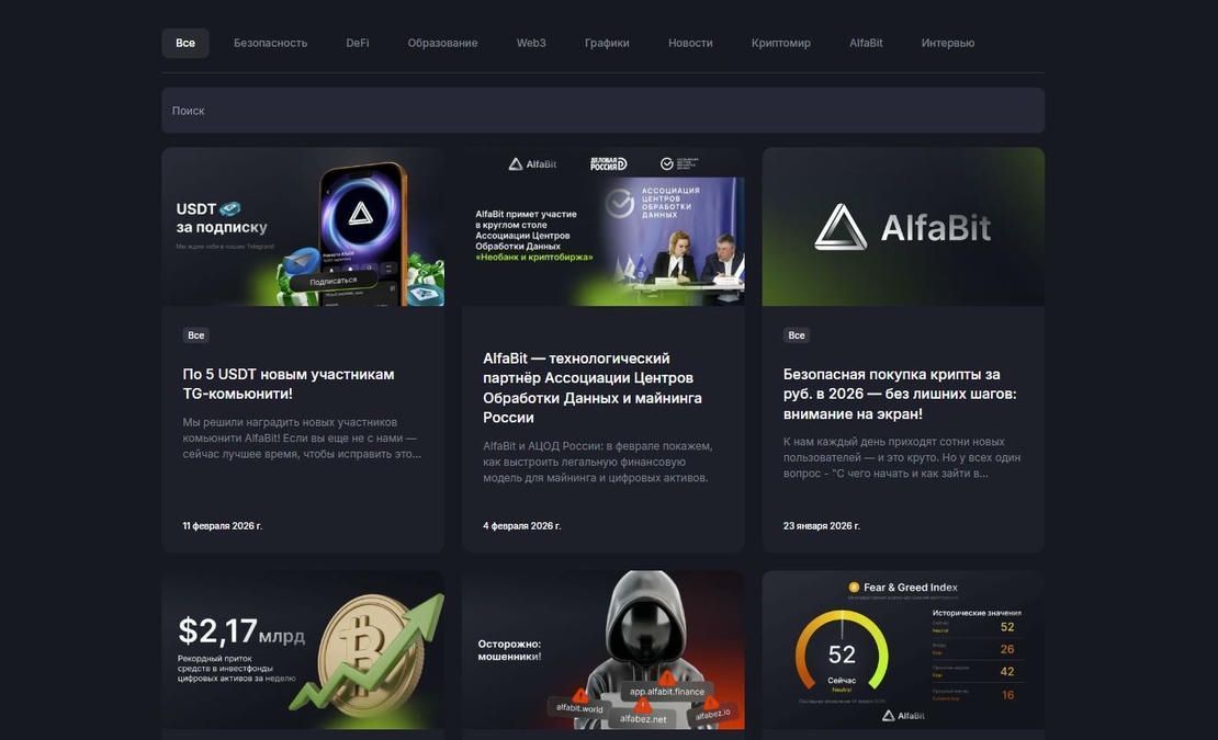 Отличительная черта AlfaBit — развитие MiniApp в Telegram, который даёт возможность управлять сделками и активами в привычном мессенджере. Такой формат удобен тем, что доступ к аккаунту и операциям остаётся «под рукой»: можно быстро открыть нужный раздел, выполнить обмен или проверить балансы, не переключаясь на полноценный веб-интерфейс. В карточке сервиса это можно рассматривать как отдельный канал доступа, который дополняет сайт и классическое приложение.