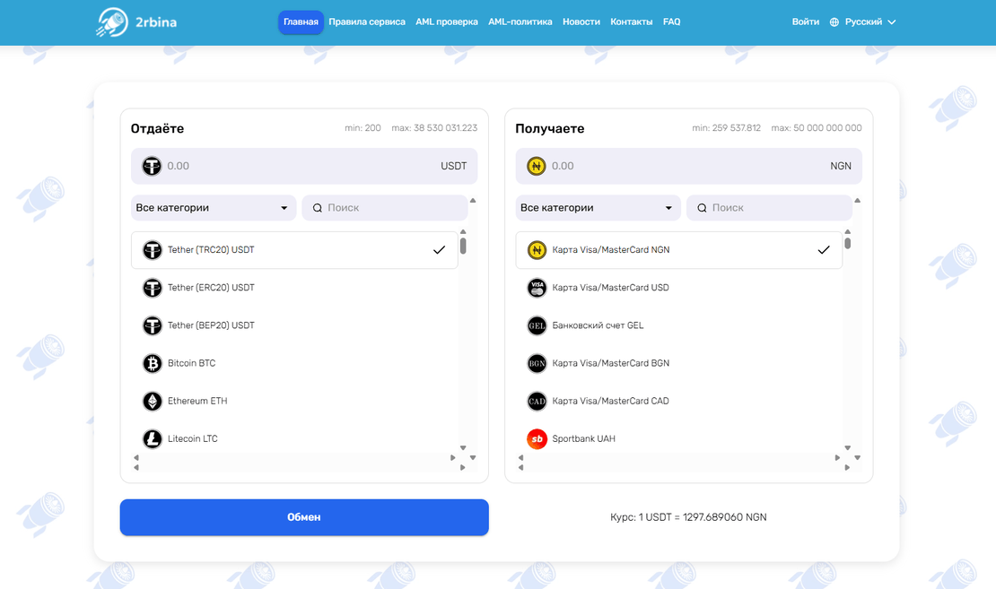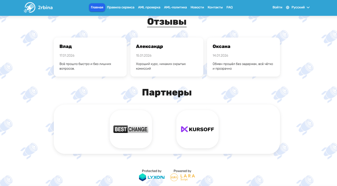2rbina — сервис для обмена криптовалют, рассчитанный на стандартные операции конвертации цифровых активов и вывод средств по выбранным направлениям. Такой формат удобен, когда требуется выполнить обмен через понятную заявку: пользователь выбирает пару, указывает сумму, вводит реквизиты и получает выплату после обработки. При оценке обменника важно ориентироваться на практические параметры — условия курса, прозрачность комиссий, лимиты, наличие резерва, а также стабильность обработки в заявленные часы работы.