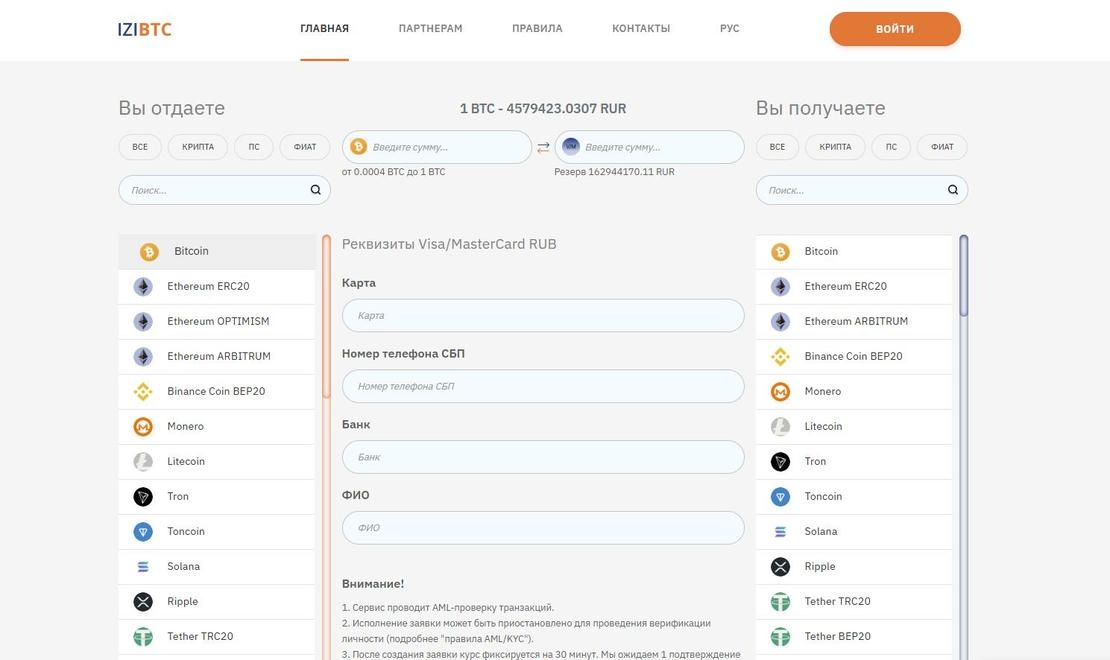IziBTC - криптообменник