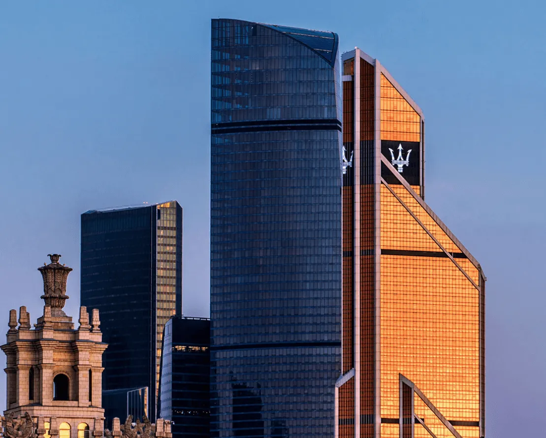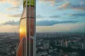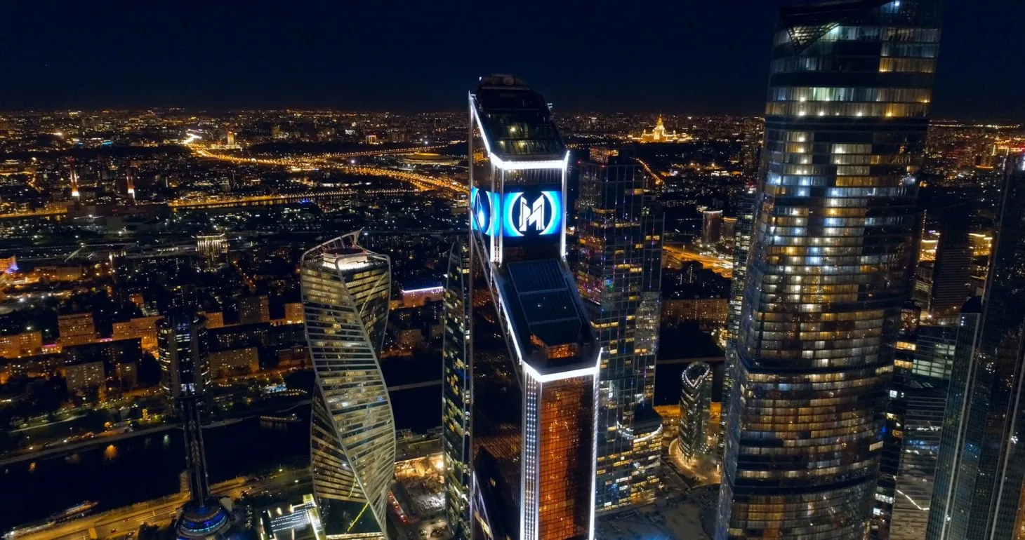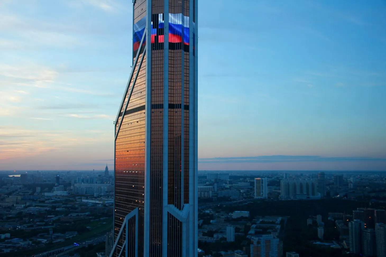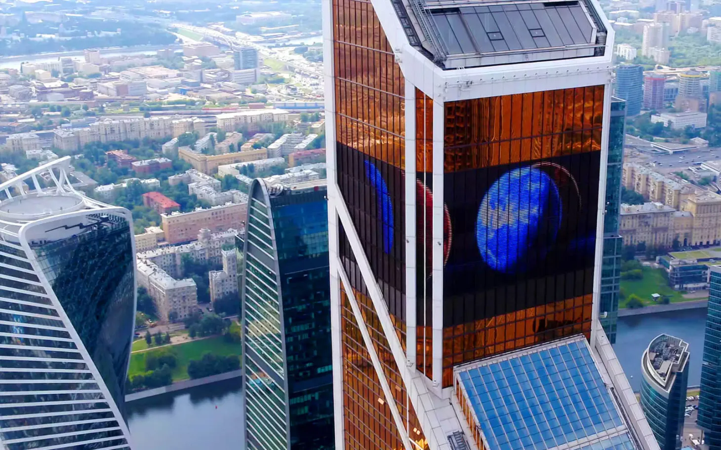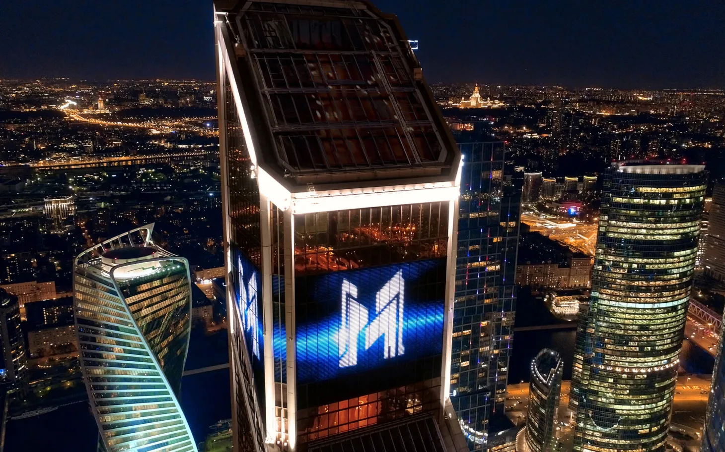 The Mercury Tower in Moscow-City has the highest media façade in Europe, with advertising seen by millions of people every day. Mounted at a height of 300 meters, the media façade encircles the golden Mercury Tower with high-definition screens measuring 28x15 meters each. The media screen occupies floors 60-68 of the tower.