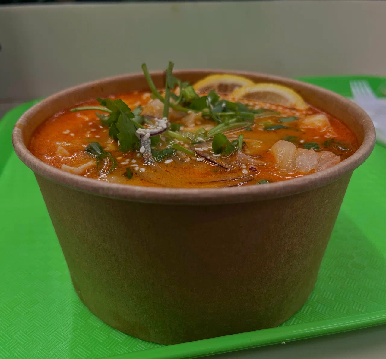 The menu features a variety of soups, wok noodles and rice, ramen, seafood dishes, fried dumplings (gyoza), smashed cucumbers, and the signature Gong Bao chicken. The noodles for many dishes are hand-pulled immediately after ordering, ensuring they remain firm and fresh. Guests often comment on the generous portions and balanced flavors.