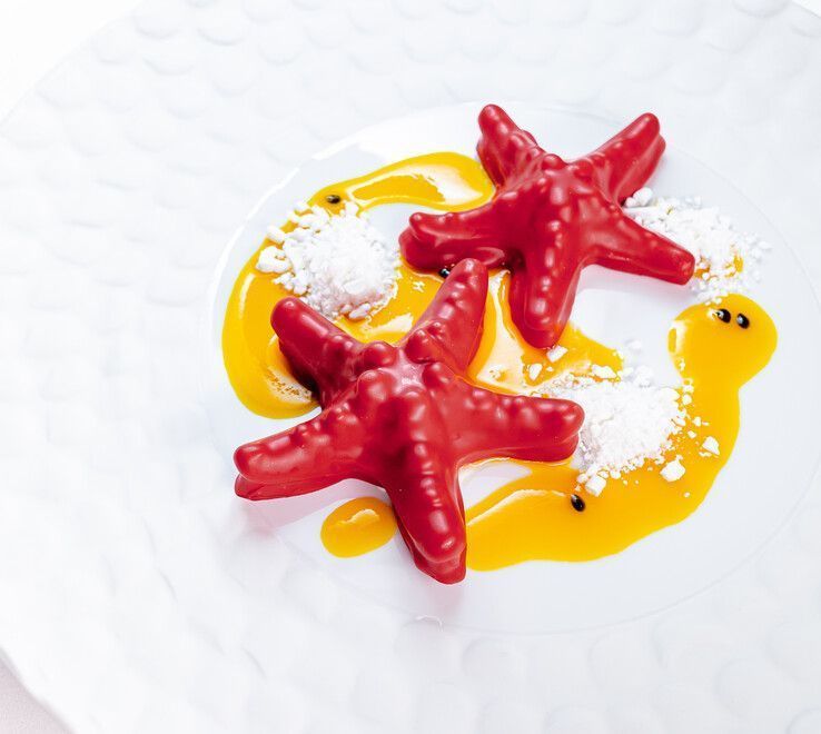 A key feature of the dining room is the chilled display with fresh fish and seafood. Deliveries are organized on a regular basis, including shipments from Morocco several times a week, which helps keep the selection consistent and up to date. The menu includes dishes made with wild-caught fish, crudo and tartares, as well as options where clean flavor, texture, and proper serving temperature matter most. If you wish, you can choose a whole fish, and the team will suggest the best cooking method for the species you pick.