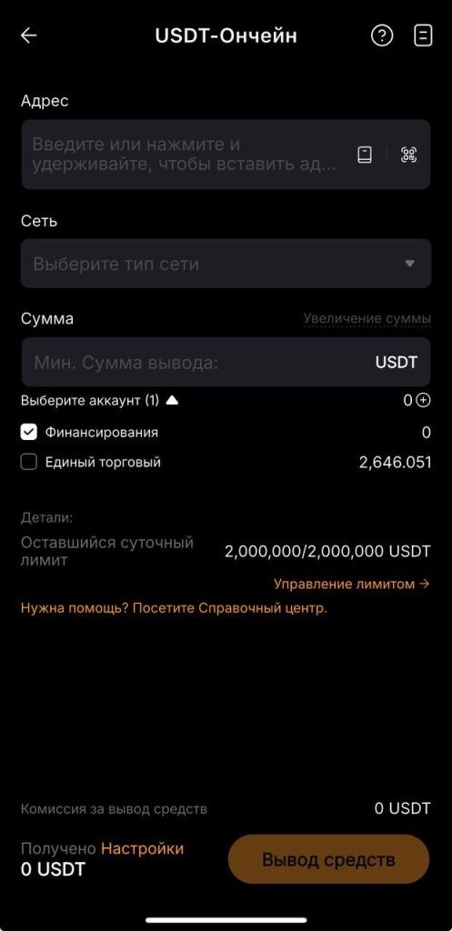 The transfer fee is paid by the sender, and it depends on the chosen network. A typical practical situation is a transfer to yourself from another account or crypto wallet. Then you just need to copy the Bybit wallet address and paste it into the wallet when sending (for example, a non-custodial one, Trust Wallet or Metamask).