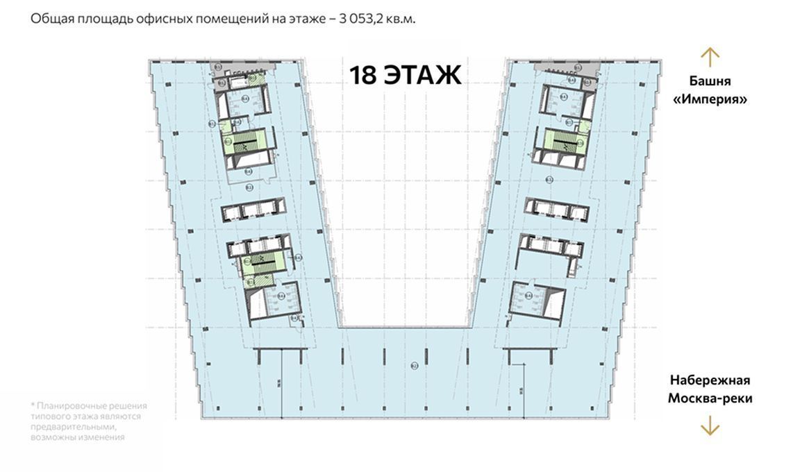 On the 18th floor of the new "Empire 2" complex, a 3,053.2 sq. m office space is available—a space that offers a rare opportunity for investors to work with large, high-quality space in the center of Moscow City. Level 18 offers a combination of height, views, and practicality, making it an attractive option for those considering a strategic purchase with a long-term horizon. The opportunity to purchase an office in the Empire 2 tower during the construction phase provides flexibility in shaping the future income model.
