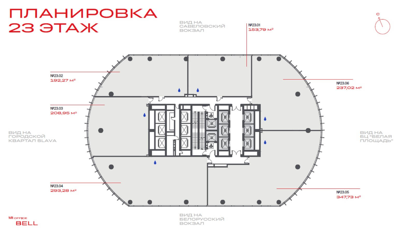BELL offices are focused on flexibility and an individual approach. The premises are offered in a shell & core condition, which allows future residents to decide on finishing and planning issues themselves. Individual blocks start from 168 m²; at the same time, large companies can combine several premises, forming floors up to 1,500–1,700 m² (data from MR Group and brokers). Both scenarios are available for companies — office rental and the opportunity to buy an office in the desired configuration and footage. Main characteristics of the offices: