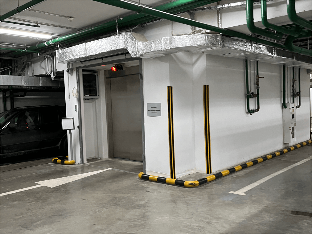 Entry to the parking area is via a car lift, access is via magnetic cards, exit from the parking area to Afimall.