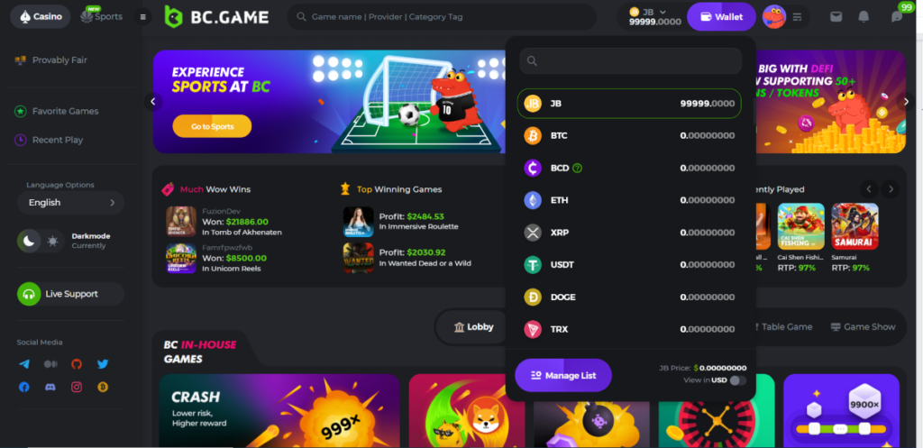 BC.Game is an international crypto-first bookmaker founded in 2017. It began as an online casino and later added sports betting and a full-fledged live stream. The bookmaker quickly built a following in Europe and Asia, but has never officially entered the Russian market and has no legal counterpart in the country. The platform is focused on convenience and speed: registration takes just minutes, the interface is mobile-friendly, and customer support responds promptly.