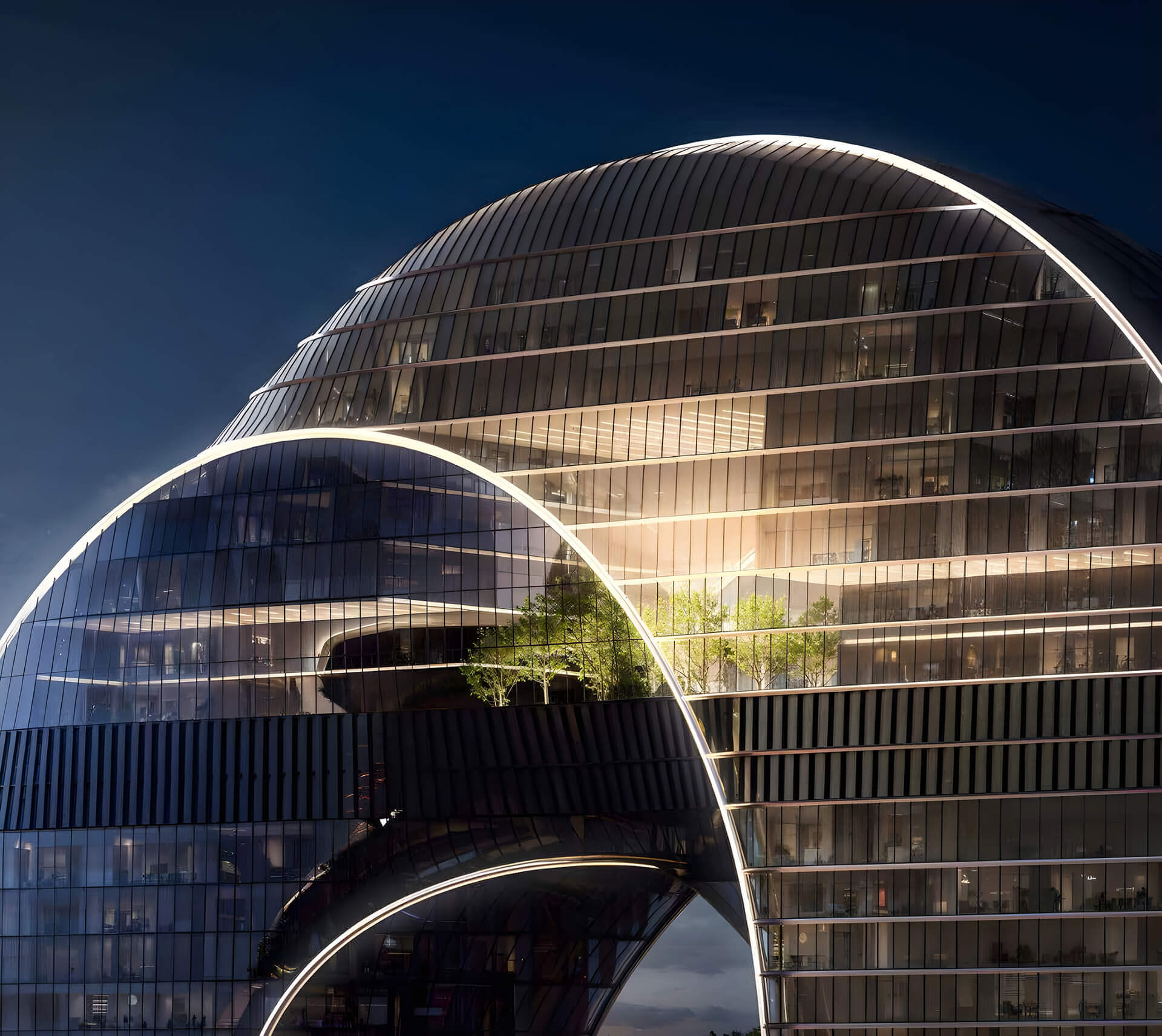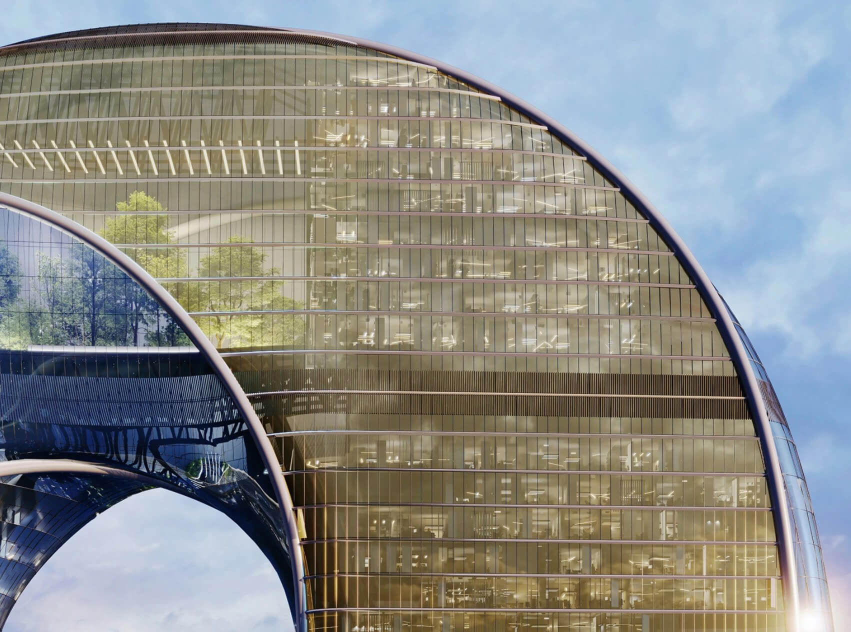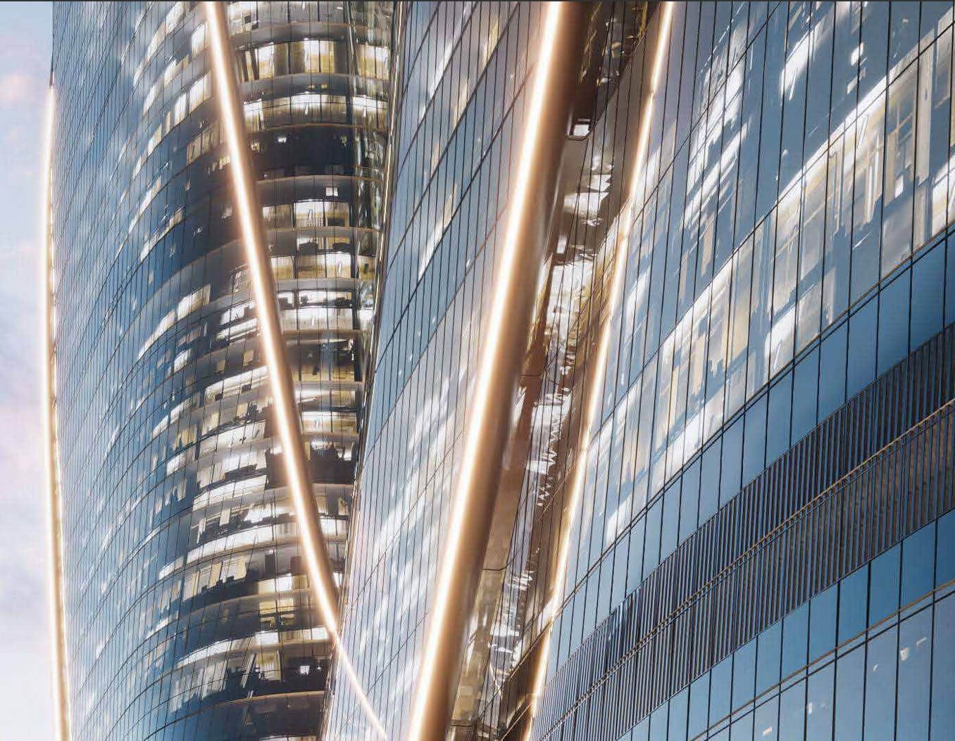 The ONE Tower facade is a high-tech glass and metal shell. The panoramic glazing is made of large-format energy-saving glass panels with precision processing, combined with premium aluminum profiles. This facade provides maximum natural lighting for the interiors and opens up breathtaking views of the city, while meeting high requirements for heat and sound insulation. Dynamic lighting is integrated into the cladding: the architectural lighting system will emphasize the smooth lines of the tower. The lighting scenario will change throughout the day - from a soft dawn glow to spectacular evening illumination - enhancing the expressiveness of the skyscraper without excessive light pollution.