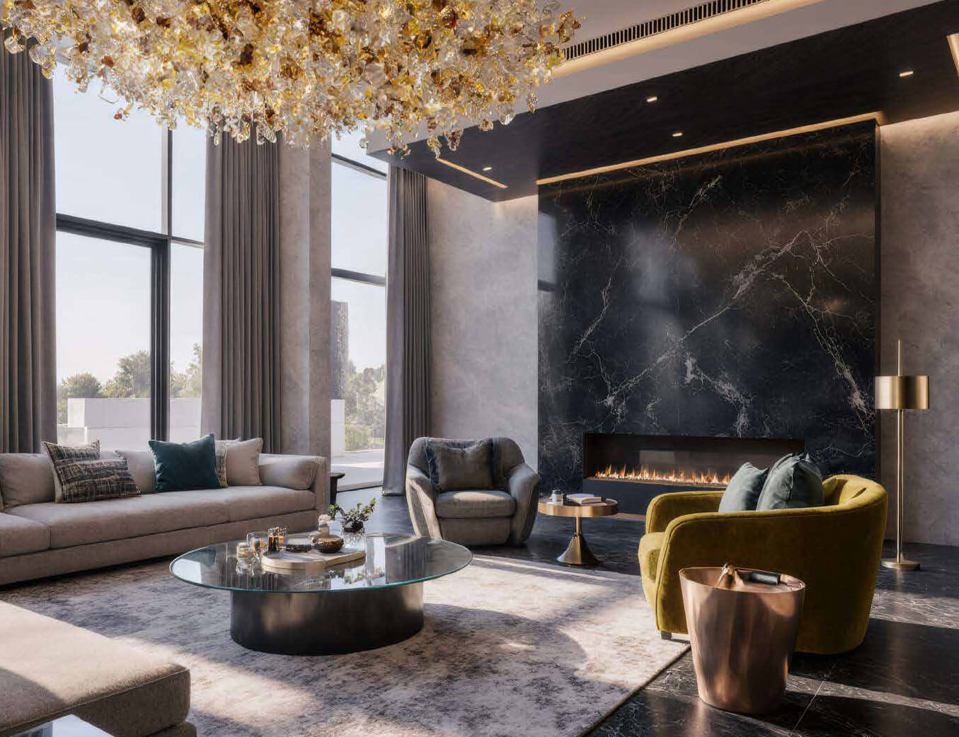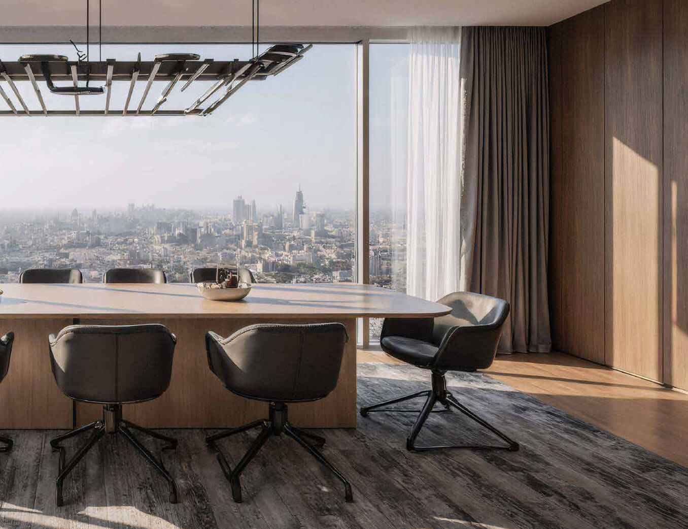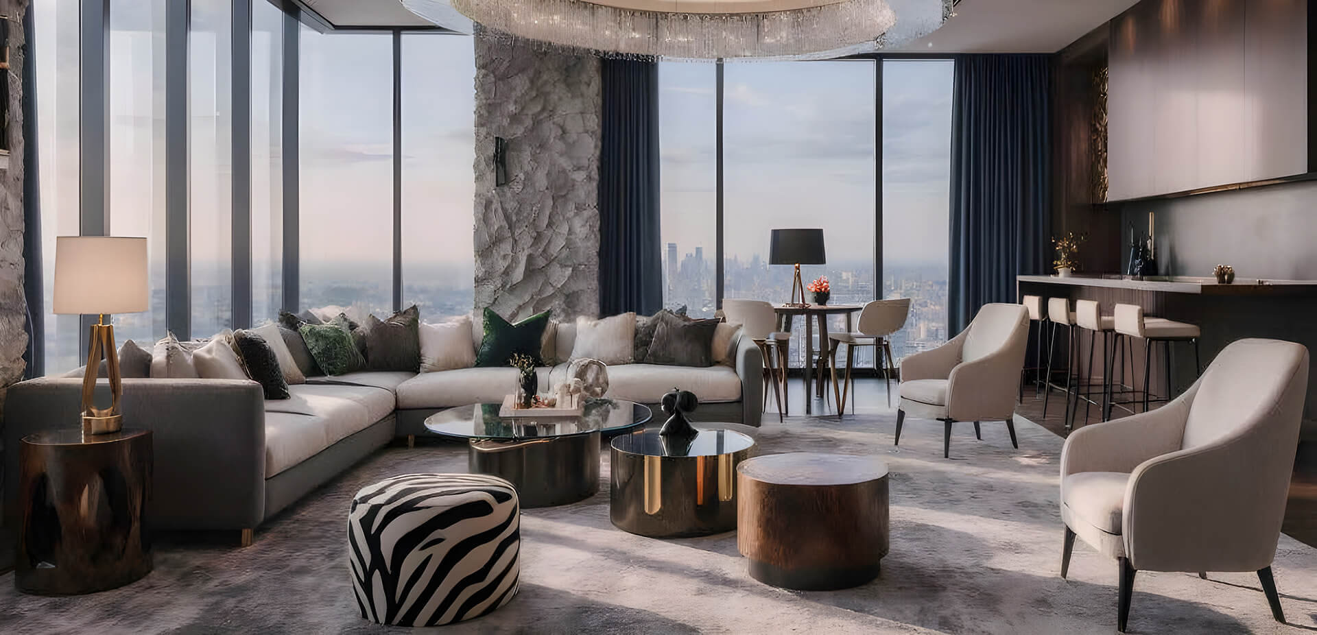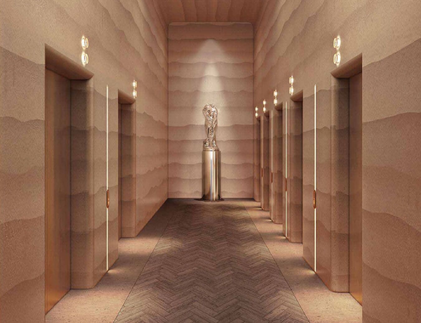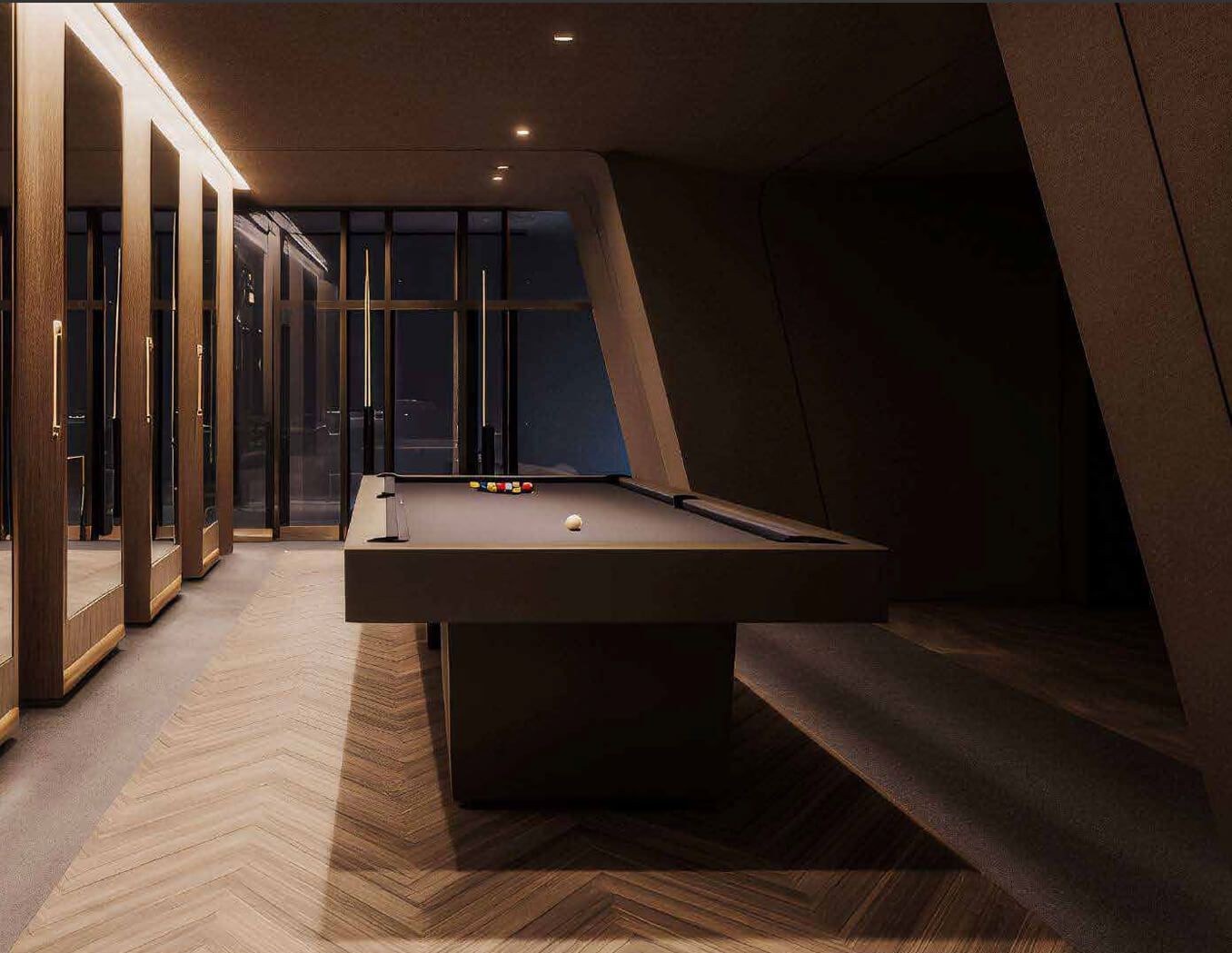 Sky Bridge and observation decks: at the level of 83–84 floors, the two ONE Towers will be connected by a glass Sky Bridge. This passage, accessible only to residents, is not just an engineering connection, but also part of the recreational space. Walking along the transparent floor of the bridge above the city is a breathtaking experience, enhancing the feeling of freedom at height. The Sky Bridge will lead to exclusive areas of the upper floors – for example, to a panoramic gaming room and a lounge under the very roof of the building. Moreover, on the 90th floor, common spaces with a glass floor are planned, creating the effect of hovering above the metropolis – essentially a private observation deck for residents and their guests.