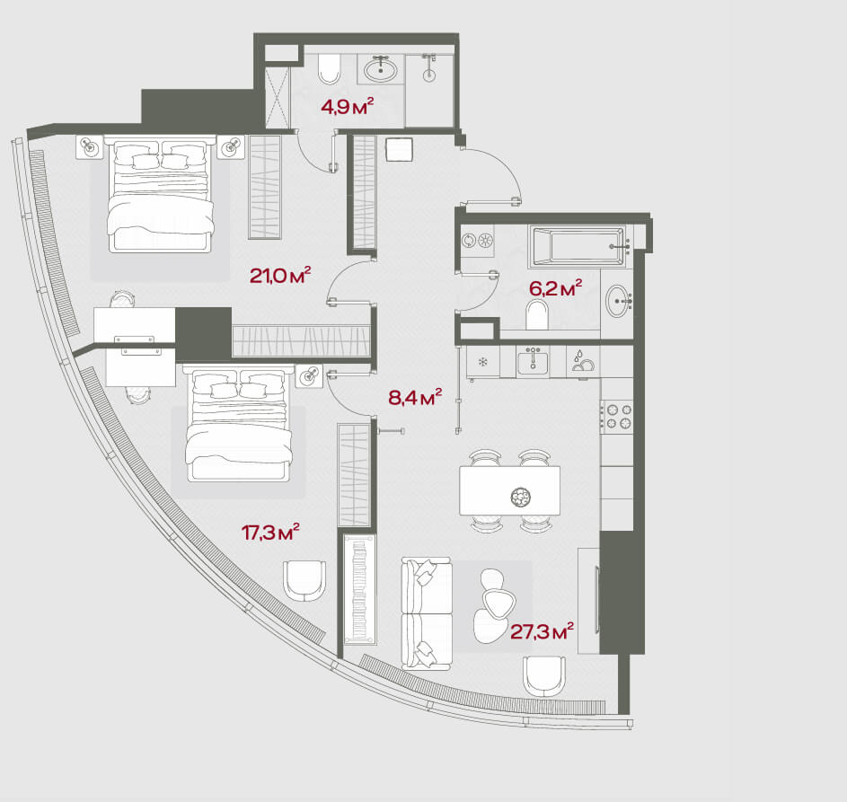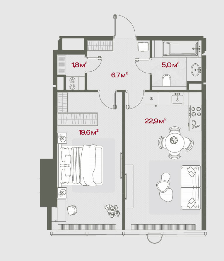 Comfort engineering systems: the indoor climate is maintained automatically by a multi-level ventilation and air conditioning system. It filters the air, maintains optimal temperature and humidity, providing freshness at any time of year. Smart home systems have been implemented in public areas and apartments, allowing you to control lighting, temperature, curtains and security via a smartphone. Particular attention is paid to safety: a modern fire-fighting system with early smoke detection and automatic fire extinguishing guarantees residents' peace of mind. Round-the-clock security and video monitoring, access control via smart cards, a concierge service in each lobby - all aspects of safety and comfort are thought out to the smallest detail.