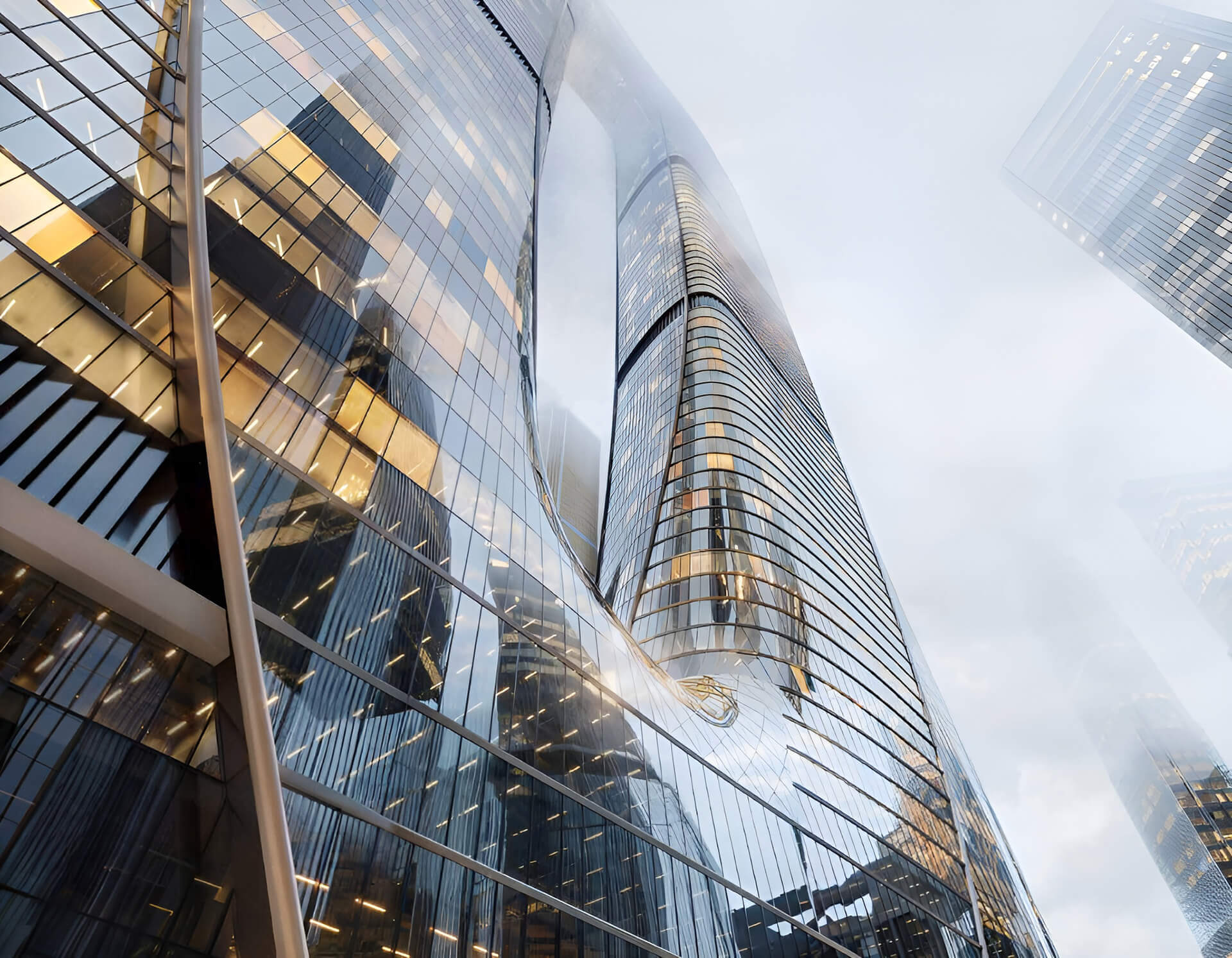 The architecture of ONE Tower is a bold combination of aesthetics and engineering ingenuity. The complex consists of two high-rise towers united by a common stylobate at the base and a spectacular bridge at the upper levels - together they form a silhouette in the form of a giant arch. From different angles, the tower looks different: the facades seem to flow into each other, reminiscent of a Mobius strip, which symbolizes the connection between the past and the future in the appearance of the city. This unique sculptural solution distinguishes ONE Tower from the background of traditional rectilinear skyscrapers, adding dynamics to the panorama of Moscow City.