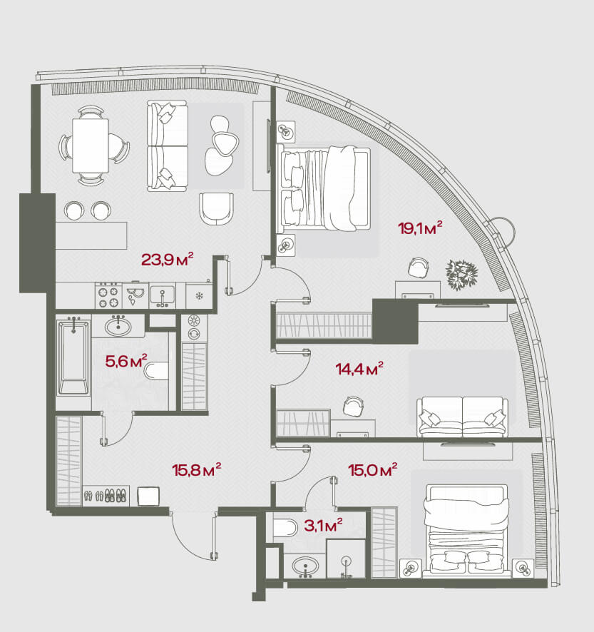 The architectural concept was developed by Sergey Kuznetsov, who, as the city's chief architect, brought a unique vision and harmony with the overall appearance of Moscow to the project. The co-author was architect Dmitry Sukhov, creative director of the Genpro bureau. Their collaboration provided a balance between creative form and functionality: unusual geometry is combined with a well-thought-out layout of the premises. The interior spaces - from the lobby to the residential floors - were designed by Oleg Klodt Architecture & Design. Oleg Klodt's designers, known for their exclusive premium interior solutions, have provided dozens of layout options for apartments and public areas, making the most of every square meter. The ceiling height in the residential part will be at least 3 meters, and panoramic windows from floor to ceiling will create a feeling of spaciousness and unity with the cityscape.