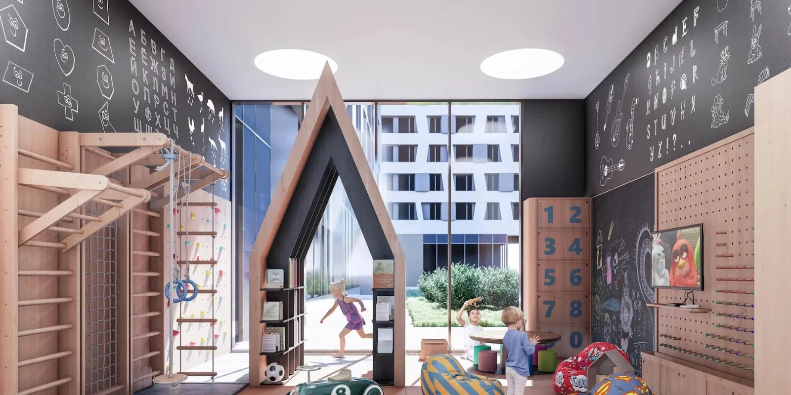 A landscaped courtyard. A private, green courtyard has been created between the two buildings—a true recreation area for residents. The landscaped area includes lawns, ornamental shrubs, flower beds, and cozy walking paths. Benches and gazebos offer fresh air. Children are equipped with modern playgrounds with slides, swings, and play structures, while teenagers and adults enjoy sports areas with exercise equipment and play areas (such as mini-football or basketball). The courtyard is fenced off from the street and has 24-hour security, making it safe to walk in at any time.