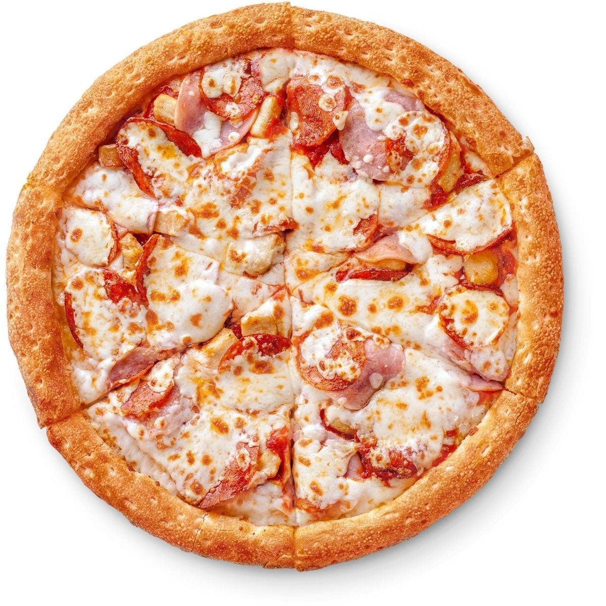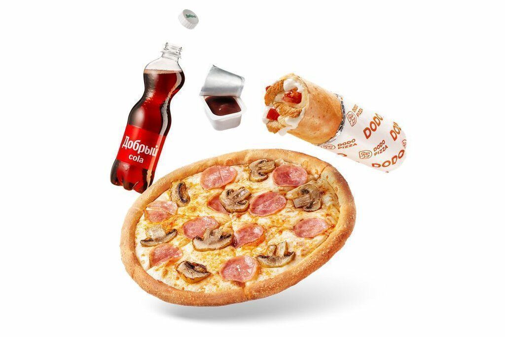 Меню сфокусировано на пицце в нескольких размерах и на двух типах теста — традиционном и тонком. Доступны классические позиции («Маргарита», «Пепперони», «Четыре сыра», «Ветчина и грибы»), а также фирменные сочетания с несколькими видами сыров и мясных топпингов, острые версии и варианты с овощами. Можно собрать половинки с разными вкусами, дополнить заказ дополнительным сыром или соусами. В линейке закусок — сырные палочки, горячие сэндвич-роллы, чесночные хлебцы; в десертах — выпечка и порционные сладости. Из напитков представлены лимонады, морсы, газированная классика, чай и кофе. Для разных сценариев предусмотрены комбо-наборы на одного и на компанию.