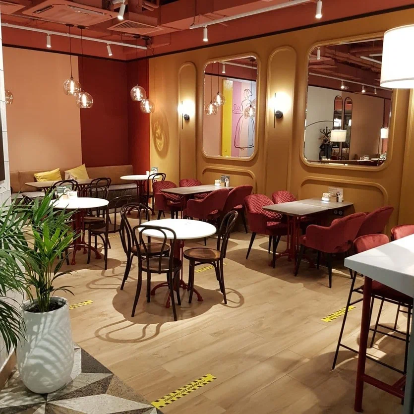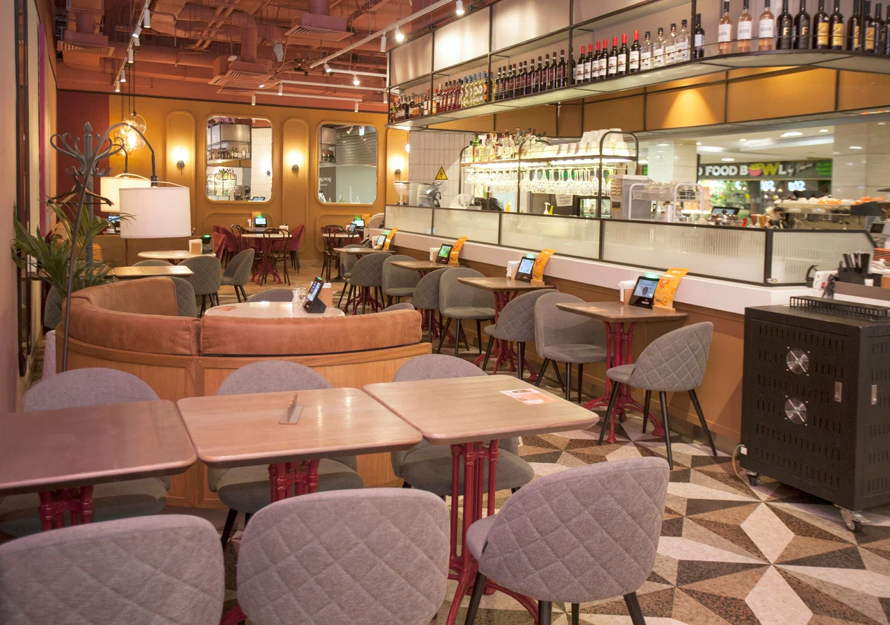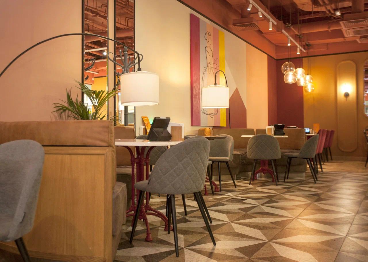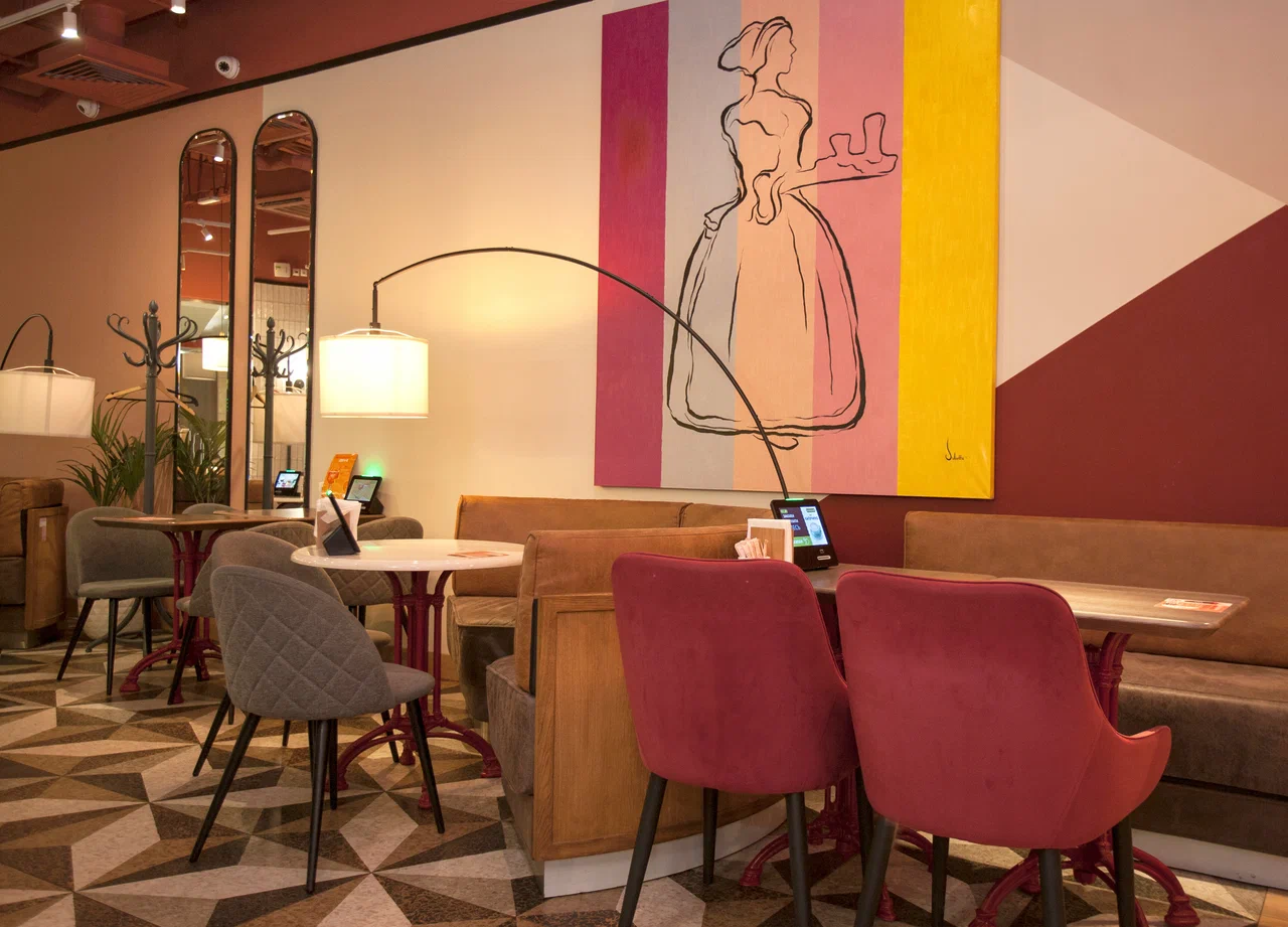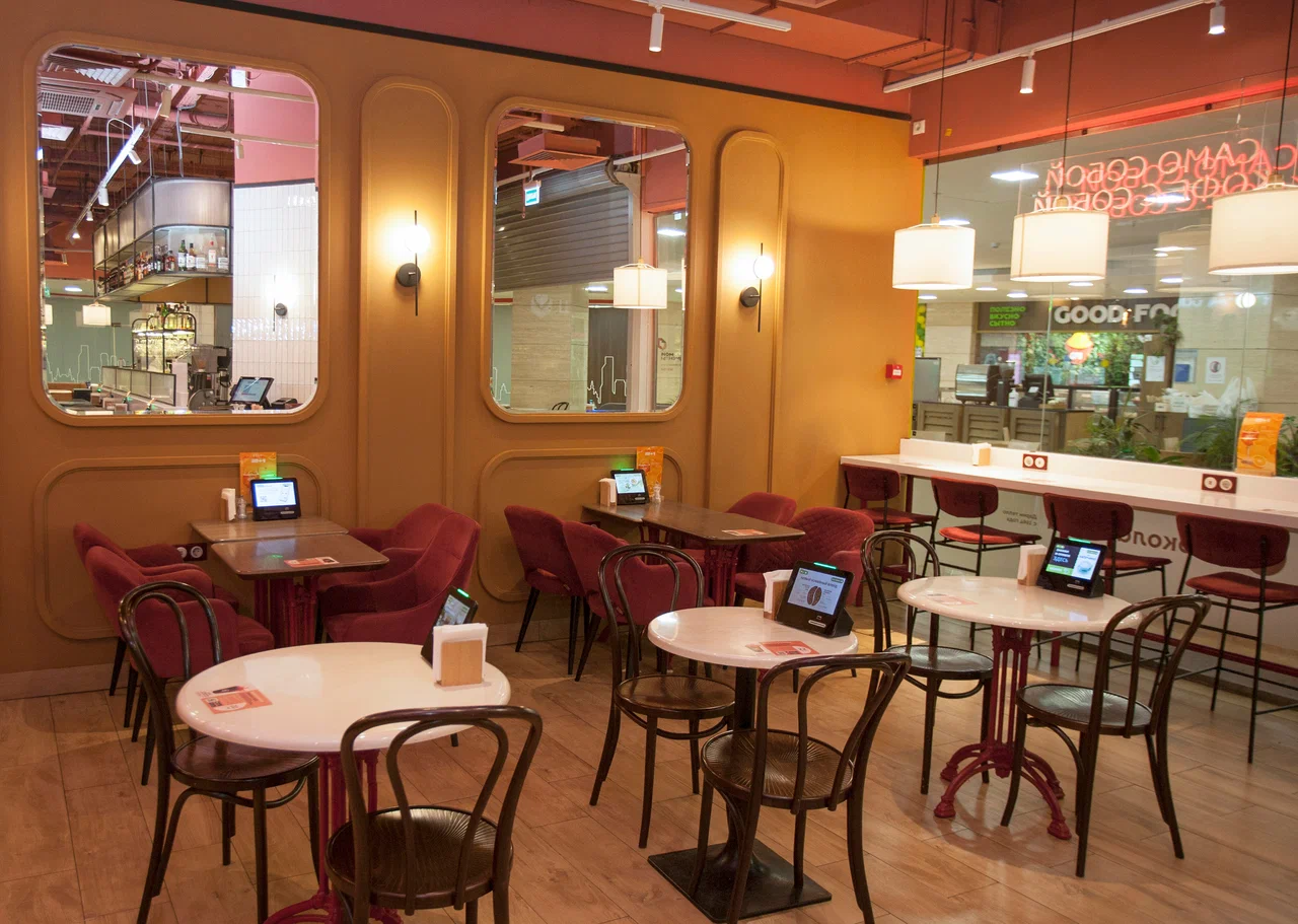Операционная модель — fast-casual с обслуживанием у стойки и за столом; работает навынос и упаковка to-go. Оплата наличными и по безналичным каналам, электронные чеки; действует простая программа лояльности с накоплениями в приложении. Навигация по меню и промо-позициям вынесена на подвесные таблички и экранные меню, что снижает время выбора в часы пик. Формат подходит для завтраков перед рабочим днём, деловых перерывов и неспешных встреч; акцент на стабильности вкуса, понятной цене и комфорте инфраструктуры торгового центра.