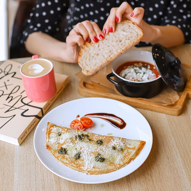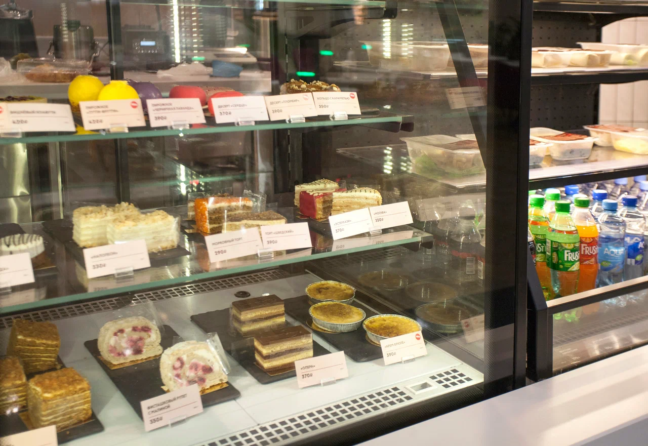 Меню сбалансировано между напитками и блюдами. В кофейной карте — эспрессо-меню, фильтр-кофе, раф и авторские позиции; базовый горячий шоколад и сезонные варианты с пряностями и ягодами. Доступны альтернативные виды молока, регулировка сладости и объёма. Из безкофеиновых — какао, матча, чайная коллекция, лимонады и смузи. Пищевой блок включает завтраки (омлеты, сырники, каши, круассаны), сэндвичи и панини, супы, салаты, пасту и горячие блюда лёгкого формата. Десертная витрина — торты, пирожные, эклеры, штрудели, вафли и блинчики; предусмотрены позиции без добавленного сахара и сезонные новинки.