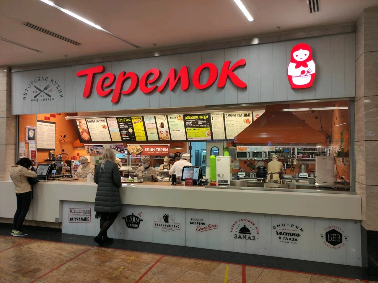 «Теремок» в ТЦ «Афимолл Сити» — сеть русской кухни в формате быстрого обслуживания, ориентированная на понятное меню и стабильное качество. Точка расположена на фуд-корте: открытая зона приготовления, наглядные витрины и экраны с меню помогают быстро сориентироваться в час пик. Посадка — в общей зоне, блюда удобно взять с собой; упаковка удерживает температуру, что важно для обедов «на ходу» и офисного самовывоза.