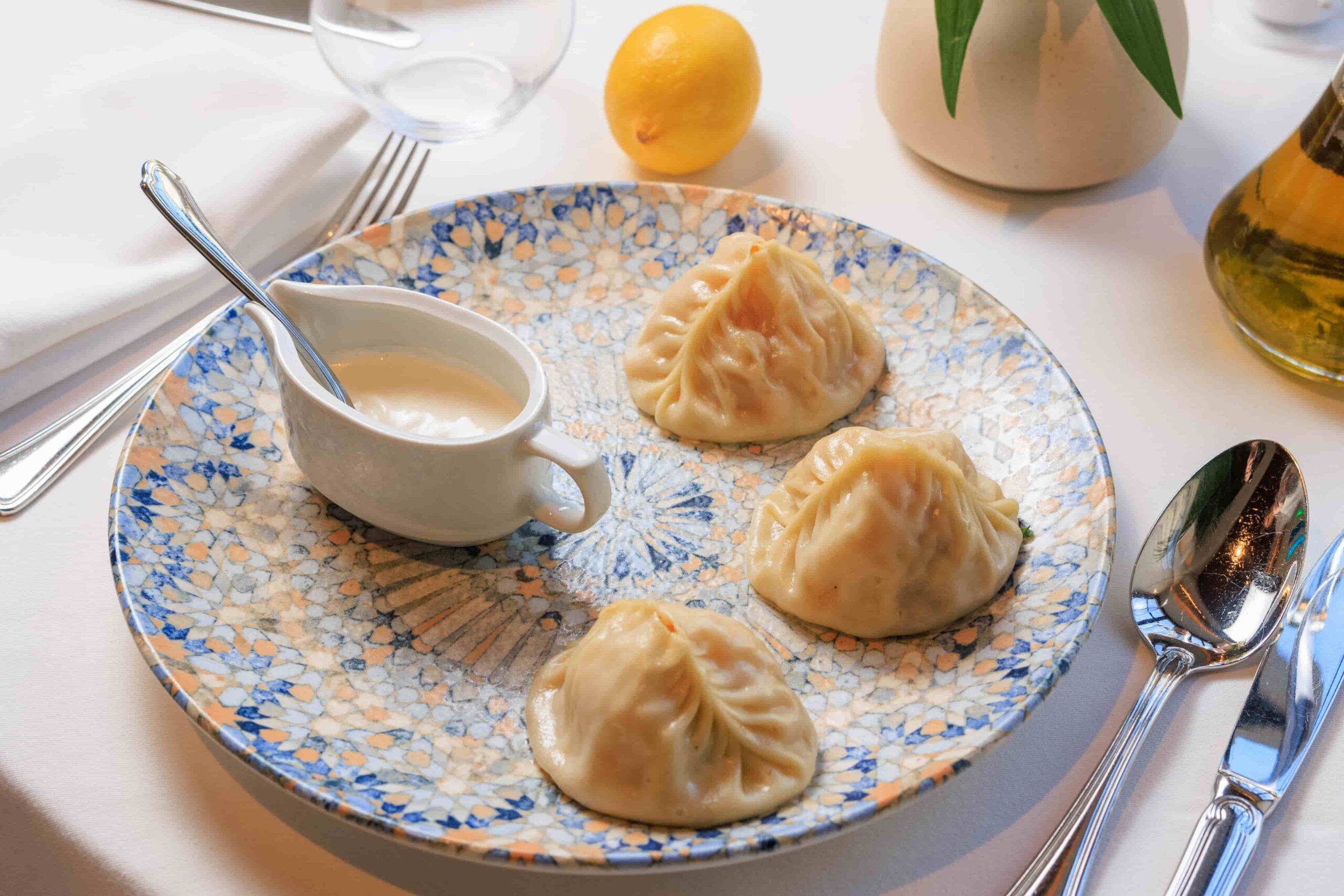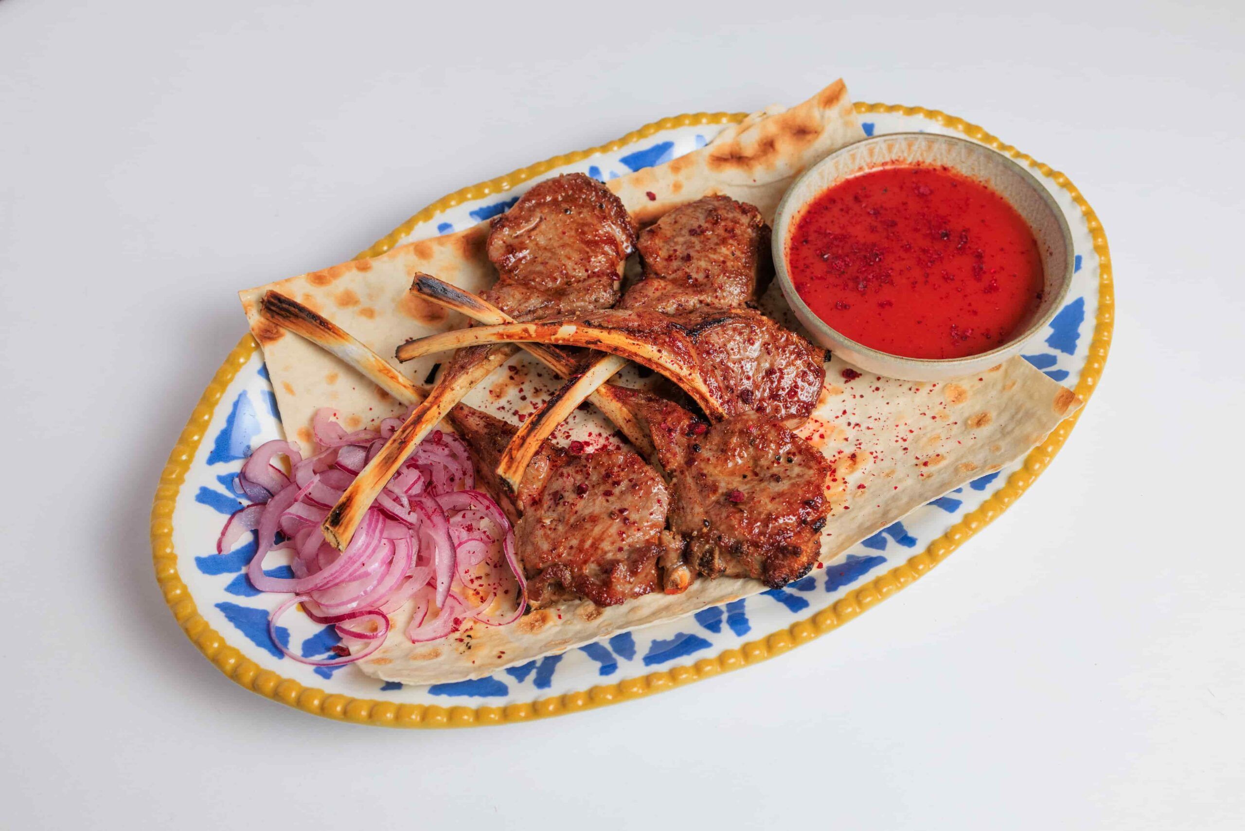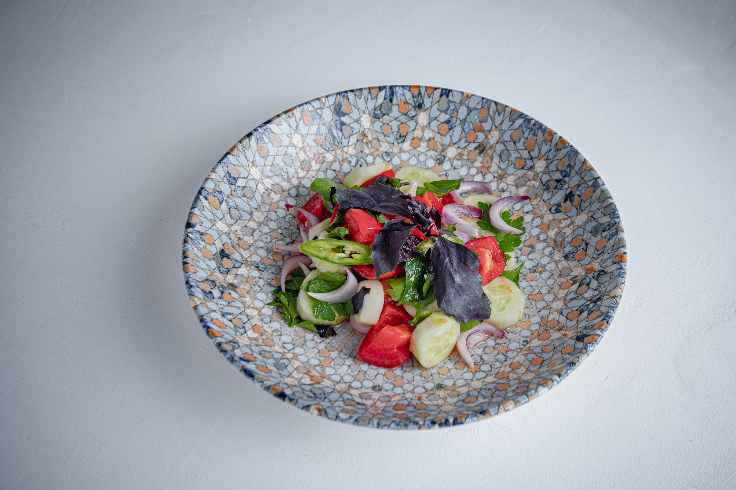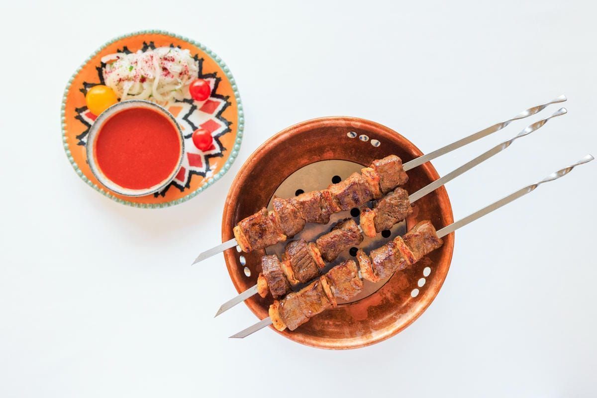 Основу меню составляет восточная кухня в авторском исполнении. В горячих блюдах много специй, томления и открытого огня, но баланс держат аккуратно, без излишней остроты. В меню есть дорада в пряном соусе храйме, томленая лопатка ягненка и цыпленок тапака. Отдельная гордость - блюда из теста: сочные чебуреки с бараниной, самса с курицей и манты с говядиной. На открытом огне готовят баранью печень с курдюком, а из морских позиций выделяется осьминог по-мароккански.