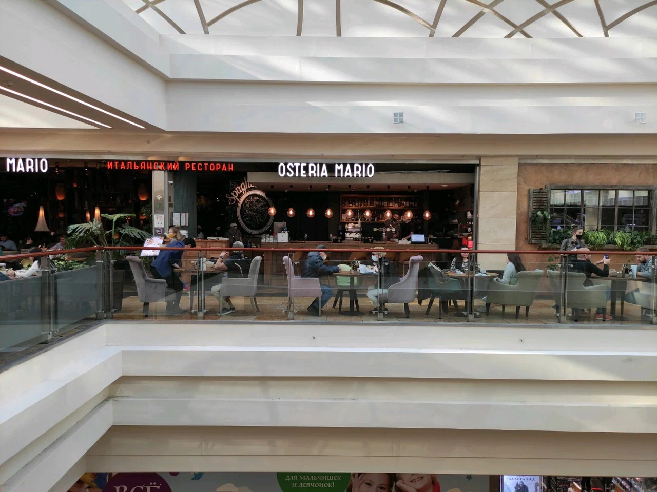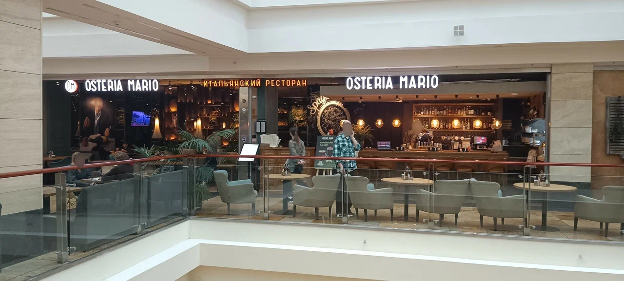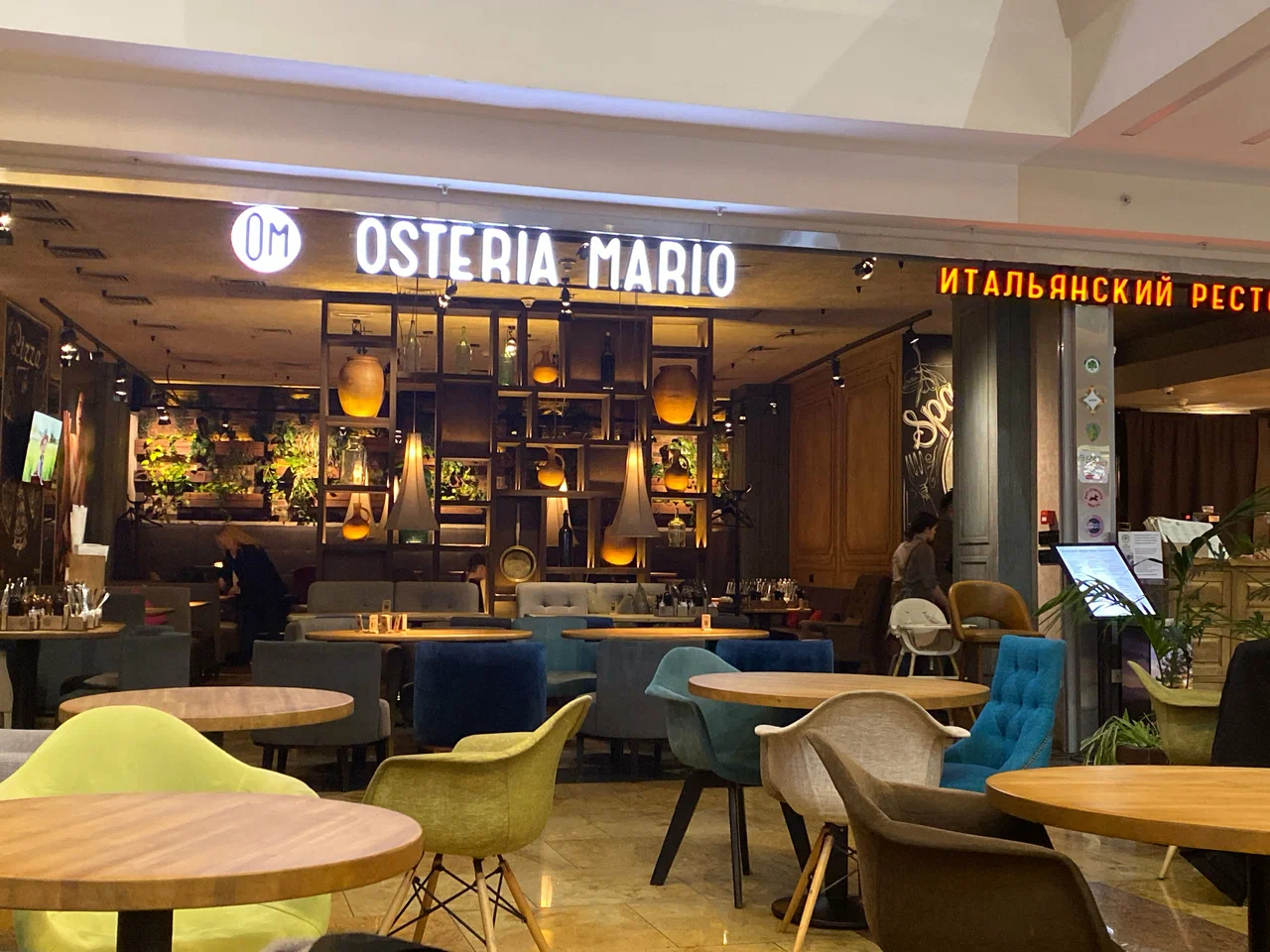 Osteria Mario на пятом этаже «Афимолла» переносит гостей из делового центра Москвы в уютные улочки Италии. Здесь пахнет базиликом, пармезаном и свежей пиццей, играет неаполитанская музыка, а официанты улыбаются так, будто вы пришли в гости. Интерьер выполнен в средиземноморском стиле: светлые стены, деревянные столешницы, глиняные кувшины и бутылки с оливковым маслом на полках, много живых растений и широкие пальмы. Через окно со ставнями, украшенное цветами, можно заглянуть на кухню и увидеть, как готовят заказ. В распоряжении семей — удобные диваны и детская комната с аниматором, поэтому сюда приходят и с детьми.