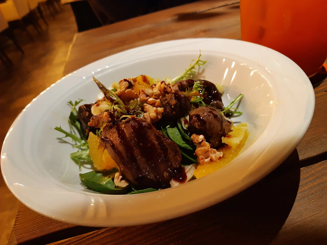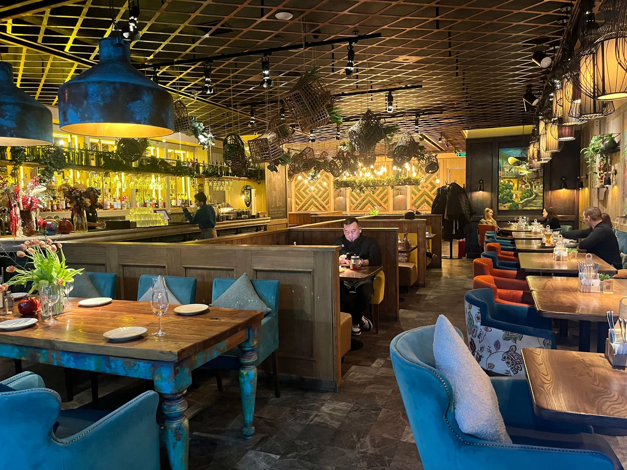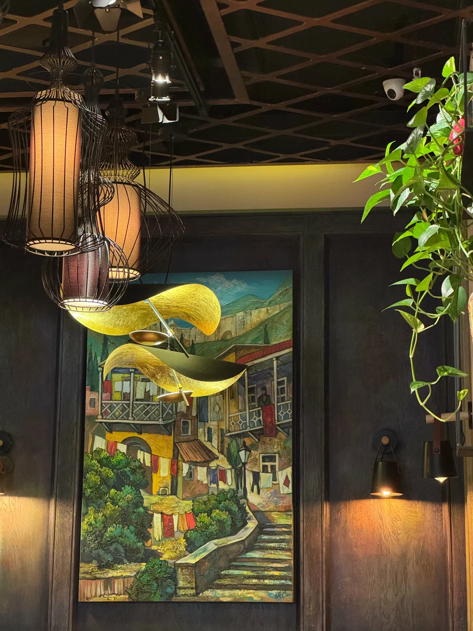 В меню — гастрономический тур по регионам Грузии. Закуски представляют пхали из шпината и фасоли, аджапсандали и гебжалия; горячие блюда — чашушули из говядины, сочное чахохбили, лобио в горшочке и фирменный шашлык на шампурах. Не обходится без хинкали с бульоном и хачапури во всех вариациях: имерули, мегрули и аджарули. Есть блюда и для вегетарианцев: салаты с ореховыми заправками, ароматные овощи из тандыра, свежая зелень и сыры. К еде подают домашние лимонады на травах и ягодах, согревающие грузинские чаи, белые и красные вина с виноградников Кахетии; в барной карте найдутся и классические напитки.