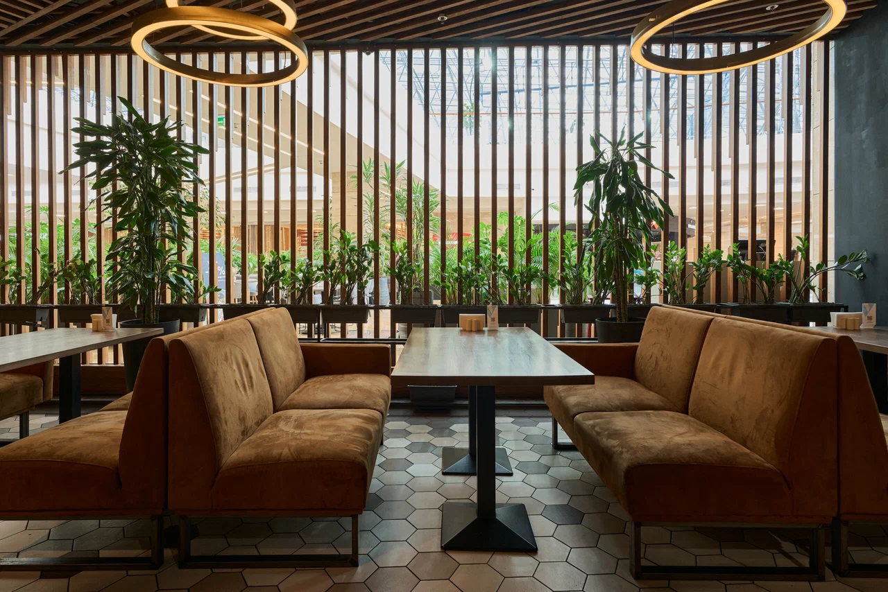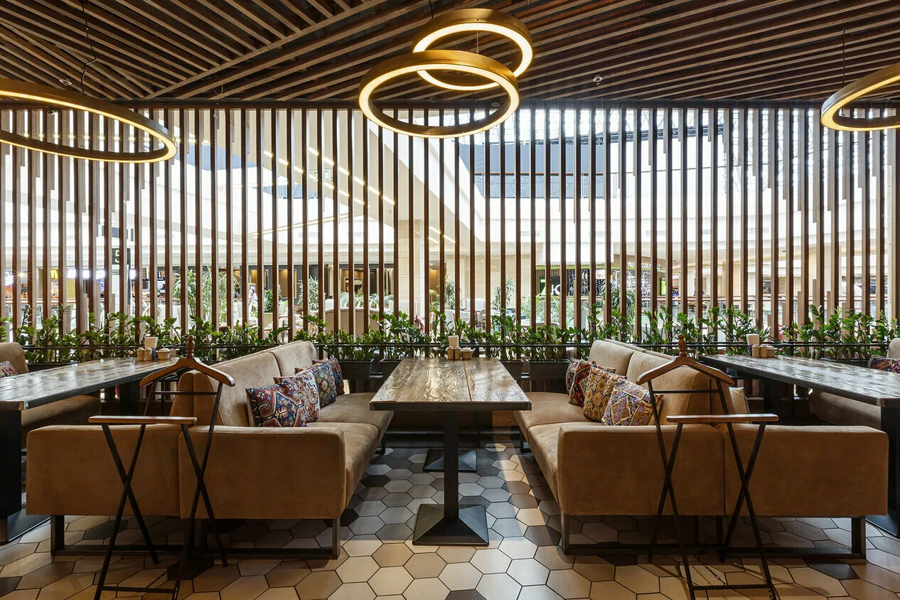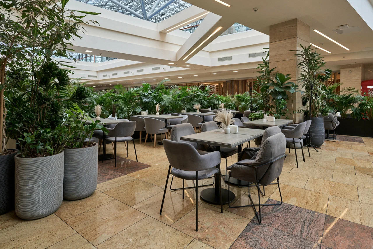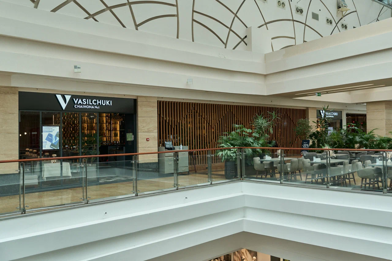 Vasilchuki Chaihona № 1 на пятом этаже «Афимолла» — место, где в одном пространстве соединены привычный городской комфорт и восточное гостеприимство. Интерьер напоминает оазис под стеклянным куполом: много света, натуральное дерево и текстиль, мягкие диваны, живые растения и элементы восточного декора создают атмосферу уюта. За большим баром готовят классические и авторские коктейли, чайную карту дополняют травяные сборы и фруктовые напитки. Есть отдельная кальянная зона для ценителей ароматного дыма, а для семей с детьми — игровая комната и специальное меню.