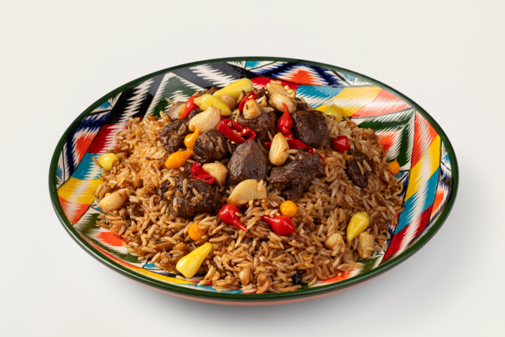 Концепция кухни — «вкус путешествий». В одном меню собраны блюда европейской, центрально‑азиатской, узбекской, уйгурской и фьюжн‑кухни. За бокалом вина можно разделить ассорти закусок, национальные салаты с овощами и свежей зеленью, попробовать сочные шашлыки и самсу из тандыра, плов, лагман и хинкали. Любителям европейской классики подают стейки, пасту, бургеры, горячие супы и разнообразные гарниры. В будни действует бизнес‑ланч, а по утрам — завтраки с кашами, омлетами и выпечкой. Большие порции позволяют заказывать блюда на несколько человек и пробовать сразу несколько вкусов.
