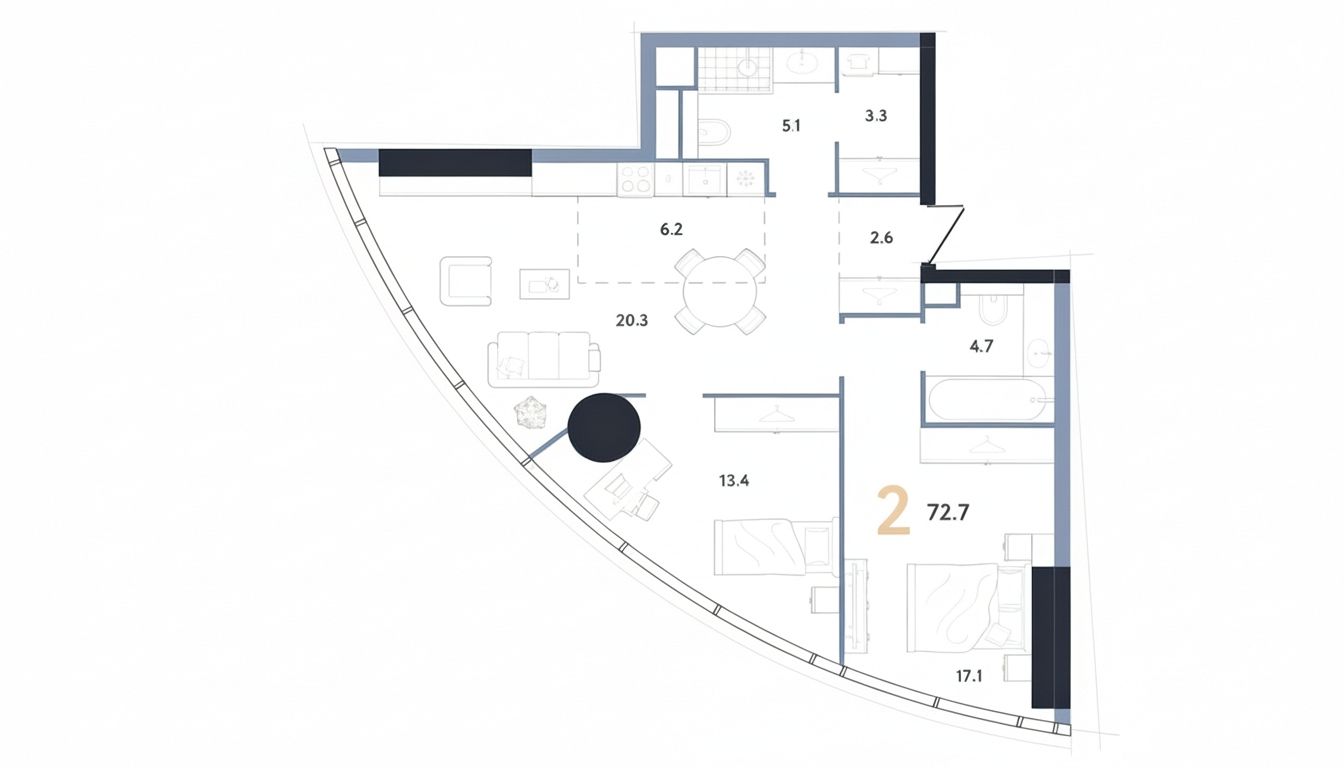 Формат квартиры рассчитан на комфортное проживание в современной городской среде, где важны не только статус проекта и локация, но и повседневная практичность. Площадь 72,7 м2 позволяет выстроить удобную жилую структуру с понятным разделением общей и приватной частей. Наличие двух ванных комнат делает пространство более гибким в использовании, что особенно удобно для семьи, пары или резидентов с насыщенным графиком. Отдельная постирочная усиливает бытовой комфорт и помогает не перегружать основные помещения хозяйственными функциями.