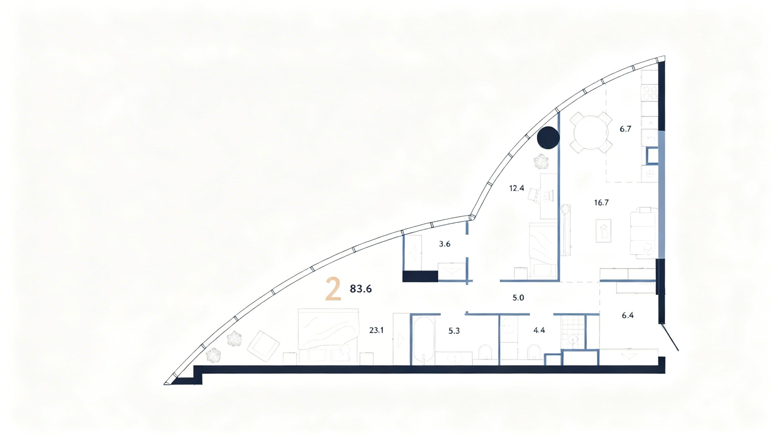 Площадь 83,6 м2 позволяет организовать полноценное жилое пространство с удобным распределением основных зон. Такой формат подходит для тех, кто ценит не только визуальный уровень недвижимости, но и практичную внутреннюю логику. Две ванные комнаты заметно повышают повседневный комфорт, делают квартиру более удобной для пары, семьи или сценария с регулярным приемом гостей. Гардеробная дополняет планировку и помогает сохранить порядок в жилых помещениях, не перегружая интерьер лишними системами хранения.