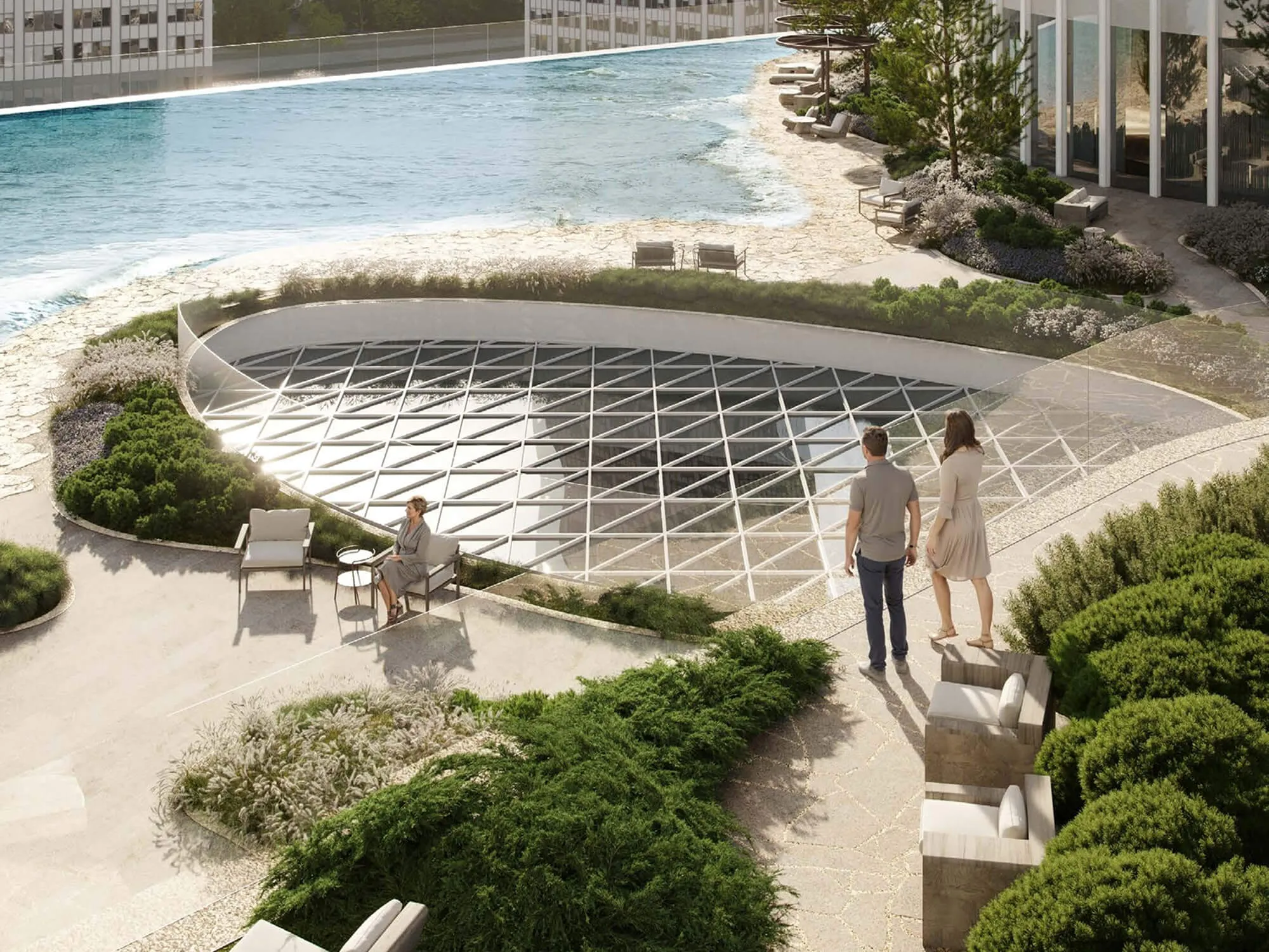 В башнях установлены 56 скоростных лифтов, за счет чего потоки резидентов, гостей и сервисных служб разделены. Доступ в гранд-лобби и на этажи организован с учетом приватности. В здании, по периметру и на парковочных уровнях предусмотрено круглосуточное видеонаблюдение. Дополнительный уровень комфорта обеспечивают системы вентиляции и тонкой многоступенчатой фильтрации воздуха и воды. Подземный паркинг спроектирован с раздельным движением резидентов и гостей, оснащен современными системами безопасности, зарядками для электромобилей и премиальной мойкой. Такой набор решений формирует среду, в которой ценится не только архитектура, но и качество повседневной жизни.