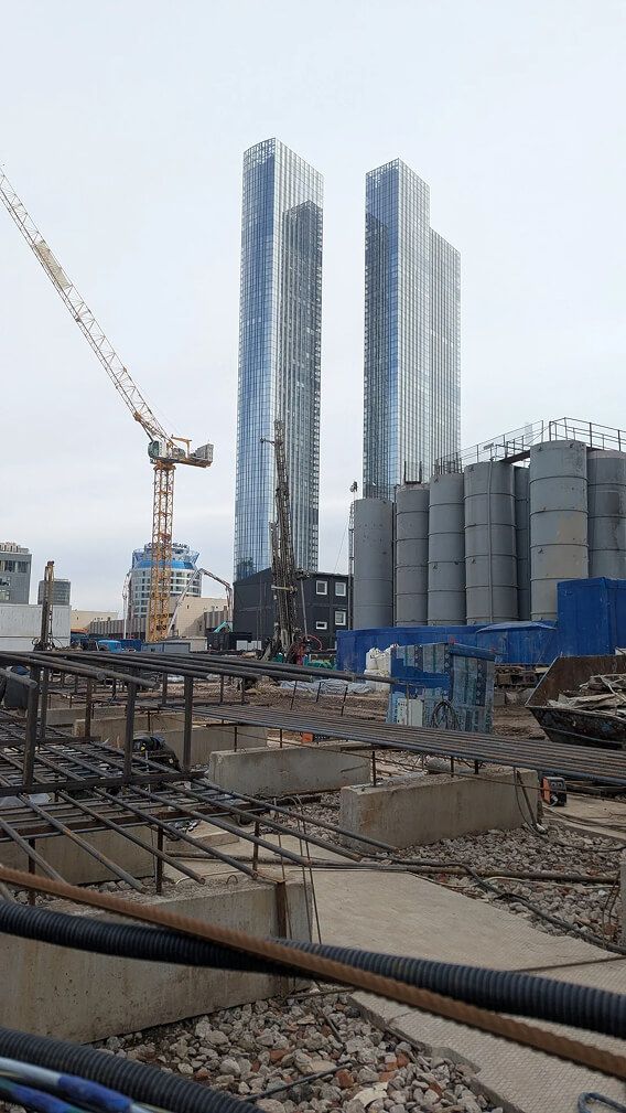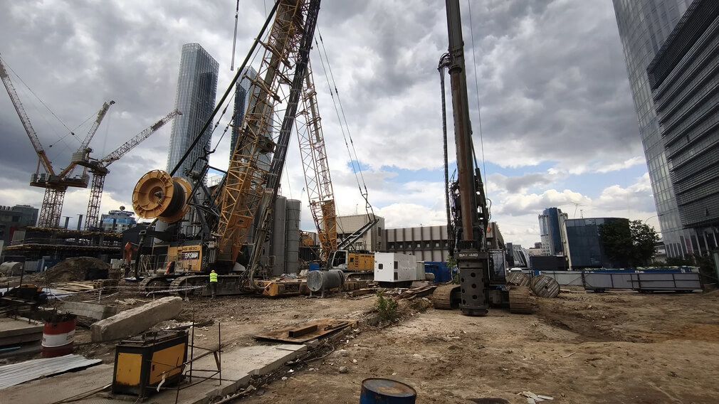 Строительство Sezar Tower разворачивается в стеснённых условиях уже застроенного кластера «Москва-Сити», что само по себе предъявляет высокие требования к организации работ и инженерным решениям. На начальном этапе (конец 2024 – 2025 гг.) основное внимание уделяется инженерной подготовке территории и сооружению ограждающих конструкций котлована. К июлю 2025 года планируется полностью завершить устройство глубокой котлованной стены и другие подготовительные работы, чтобы затем приступить к возведению фундаментной плиты и надземных конструкций. Учитывая масштаб здания (более 50 надземных этажей) и близость метро, строители применяют современные технологии основания – вероятно, монолитный железобетонный ростверк с мощными свайными опорами для распределения нагрузки на грунт (аналогично другим высоткам «Сити»).