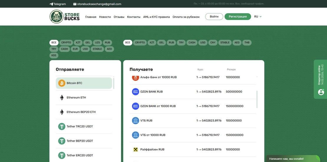 StoreBucks 将加密兑换与法币场景结合在一起,提供清晰的申请逻辑,并强调“干净转账”。支持基础加密货币与稳定币,同时可提现到俄罗斯银行与银行卡。StoreBucks 适用于需要快速转换,并希望法币端处理更稳妥、流程不过度复杂的场景。