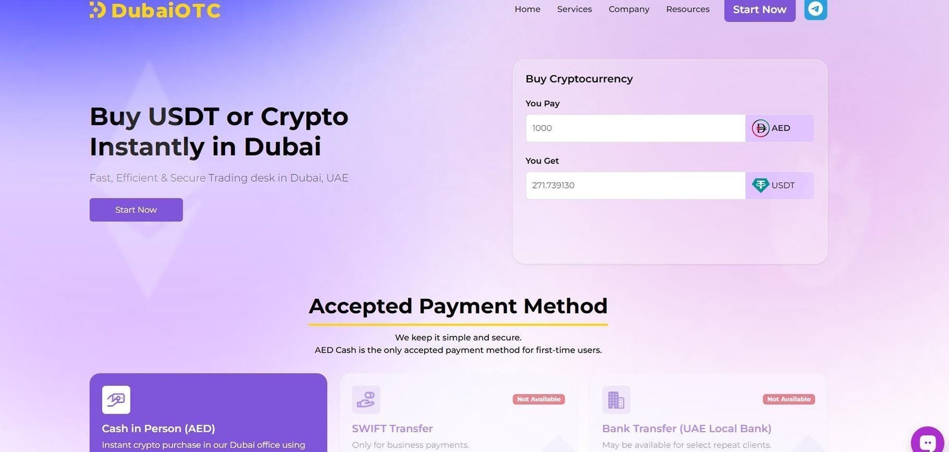 Dubai OTC 是一家位于迪拜的加密货币交易服务商,以场外交易(OTC)平台的形式运营,支持用户使用法币买卖数字资产。 该服务专注于无需传统交易所界面的快速加密货币交易,因此其主要业务模式并非围绕交易展开,而是围绕按预先商定的条件进行兑换。 该平台服务于个人客户及企业客户,业务范围包括迪拉姆(AED)交易、交易支持以及通过场外交易(OTC)模式处理大额交易。