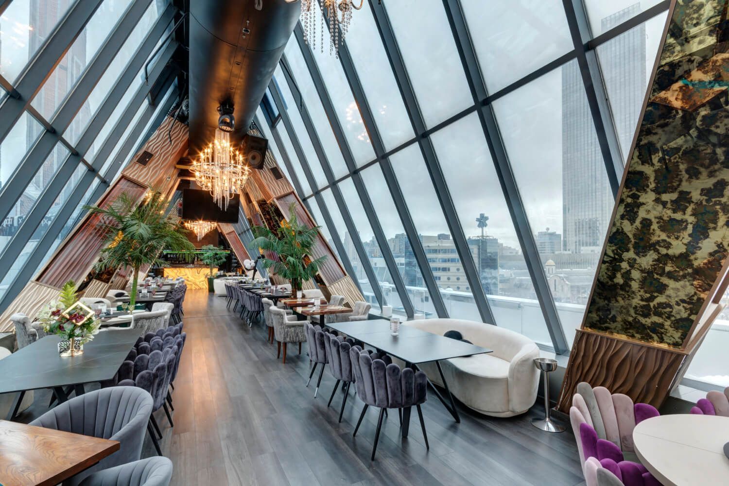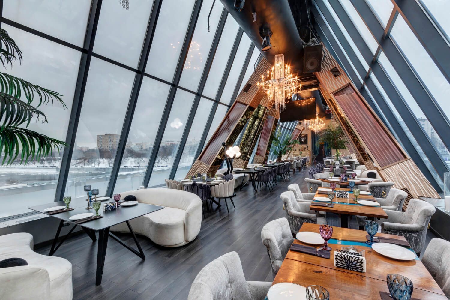 Most Lounge & Bar 位于巴格拉季昂桥顶,位置独特,不仅能为游客提供莫斯科河和莫斯科城摩天大楼的全景视野,更能营造独特的氛围。它是唯一一家直接位于河上的酒吧,对于寻求城市景观与水景完美融合的游客来说,尤其具有吸引力。