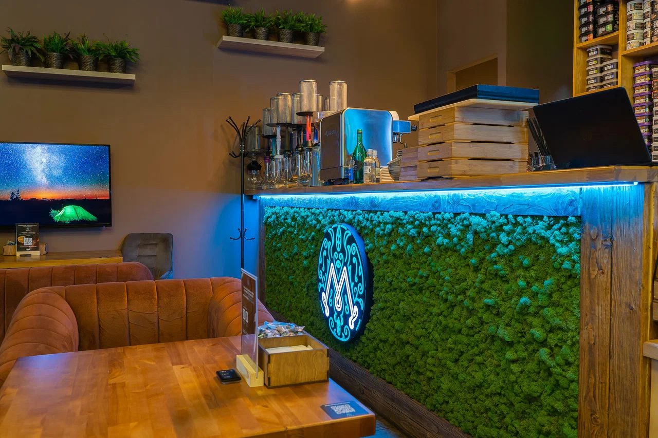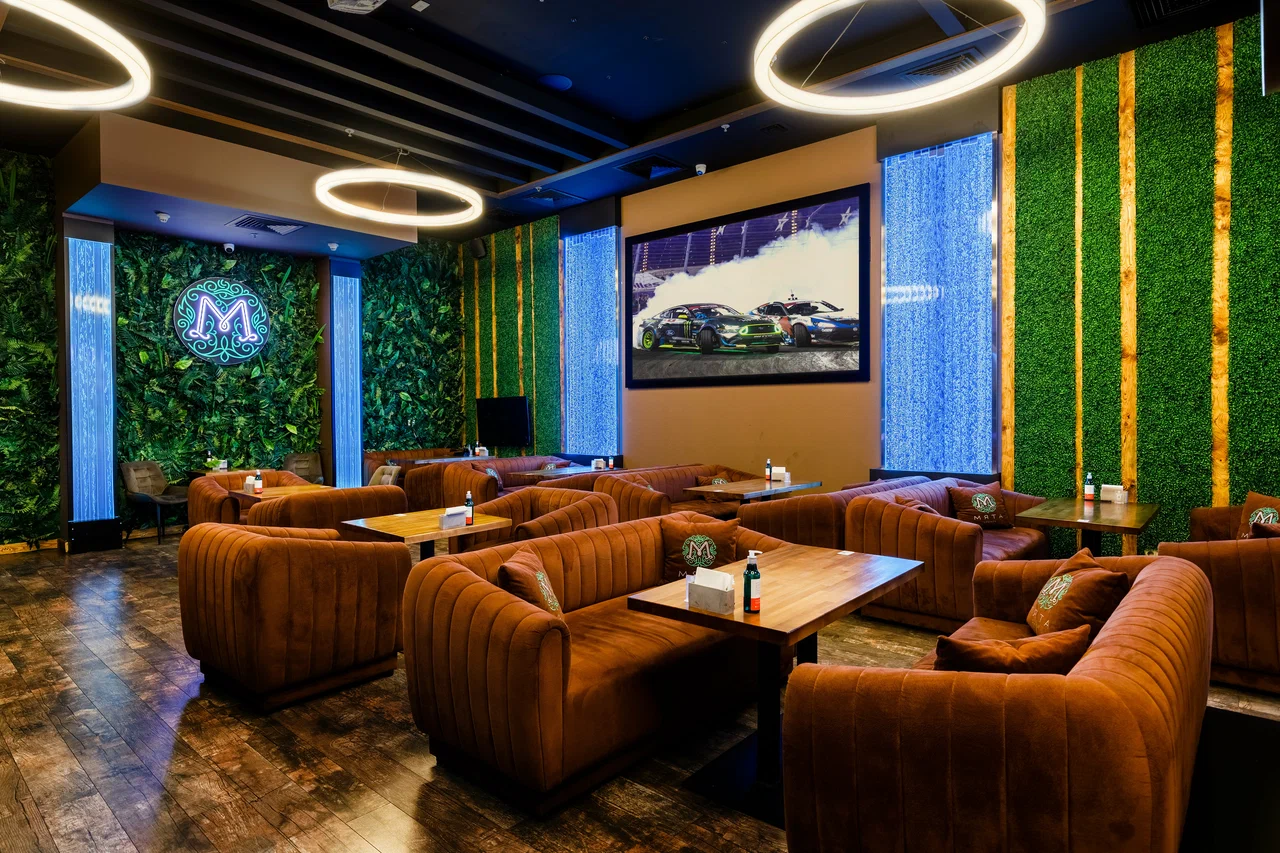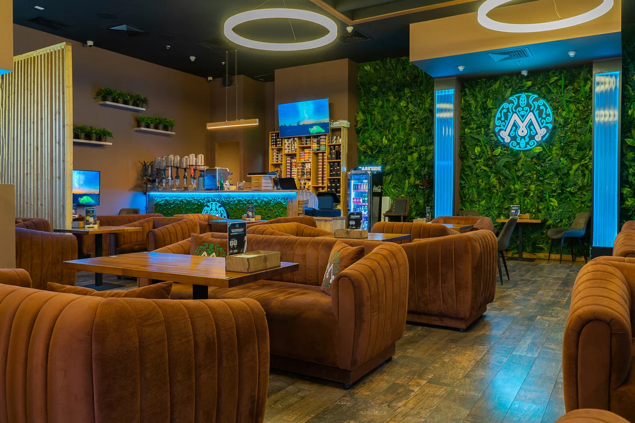 位于阿菲莫尔城购物中心的Myata Lounge是一家位于商业区中心的休闲场所,专注于水烟供应和舒适的座椅。空间划分合理:柔软的沙发、柔和的灯光、舒缓的音乐,以及水烟区的通风系统。座位设计适合各种场合,从一对一会议到小型团体聚会,应有尽有。室内采用中性色调,点缀着木材和纺织品,部分桌位配备电源插座,并提供稳定的无线网络。
