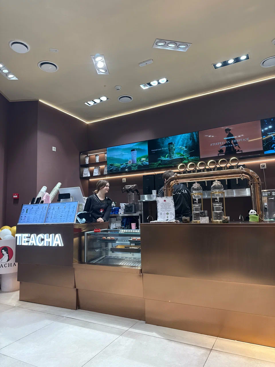 该店专为莫斯科市区和购物中心的顾客设计:饮品制作快捷,排队管理通过清晰的菜单和透明的品类导航进行。Afimall 的 Teacha 非常适合商务会议之间的短暂休息,或悠闲地品尝招牌茶饮;注重冲泡品质和便捷的服务,确保常客和新客都能获得满意的体验。