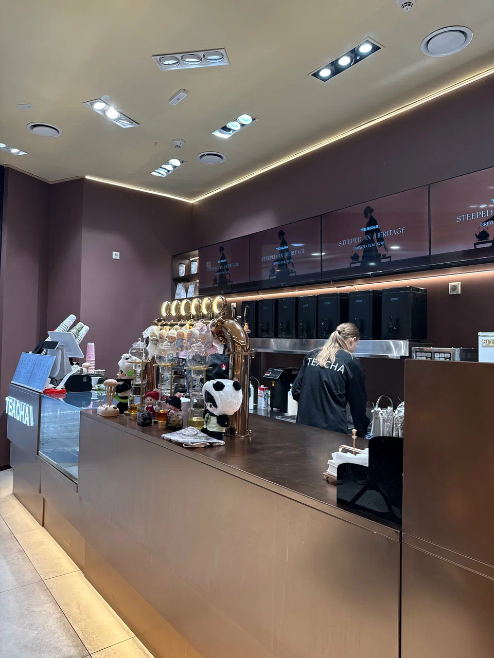 Teacha 是位于 Afimall 购物中心的一家专业茶饮和咖啡店,专注于以优质茶叶制作的现代饮品。店内采用快速服务柜台和紧凑座位相结合的模式,注重口味的一致性、萃取控制和配方的一致性。茶品以经典品种(乌龙茶、绿茉莉、红茶和普洱)和招牌拼配茶为主,提供热饮、冷饮和冷泡饮品。我们开发了奶茶和水果茶系列,并提供多种选择:您可以选择茶底、甜度、冰度、牛奶类型(包括植物基)和配料(木薯、芦荟、椰子或浆果果冻、布丁和奶酪泡沫)。芒果、百香果、荔枝和柑橘等口味的限量版茶饮将按季节供应。