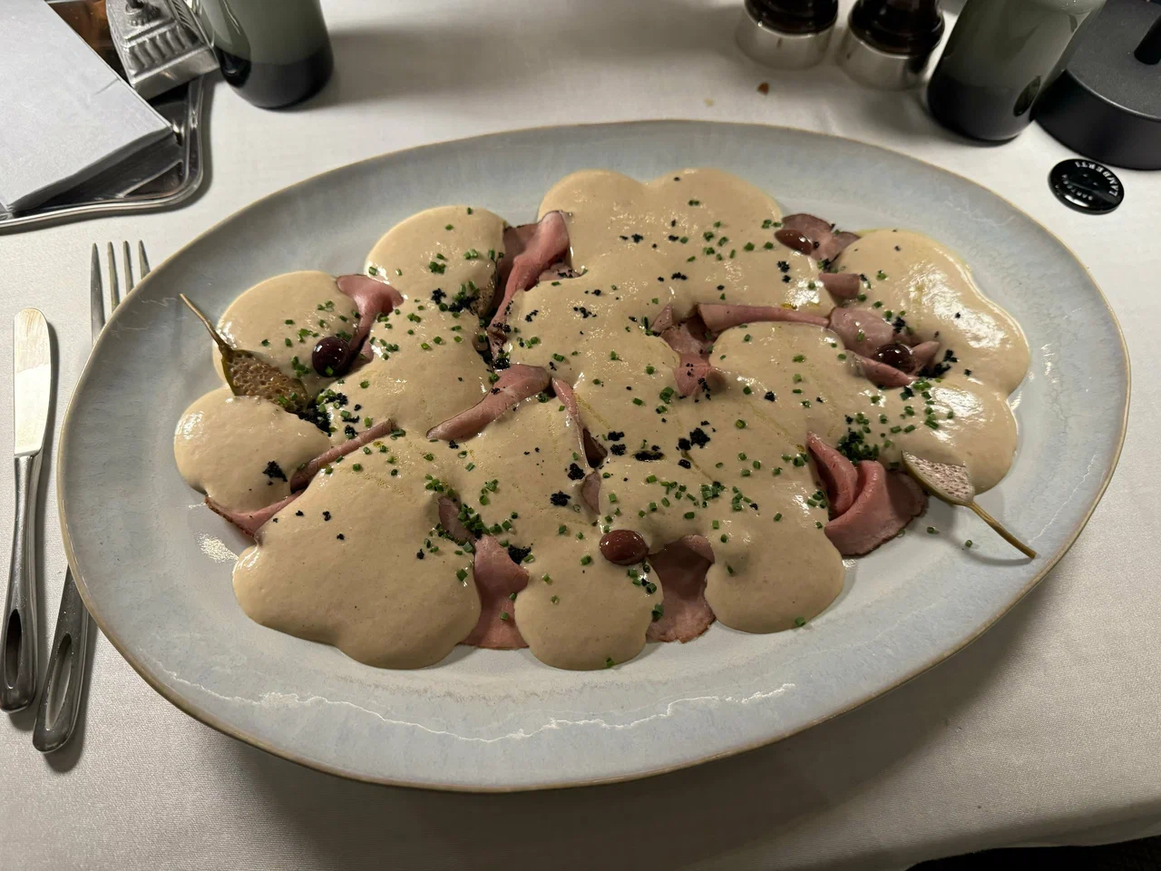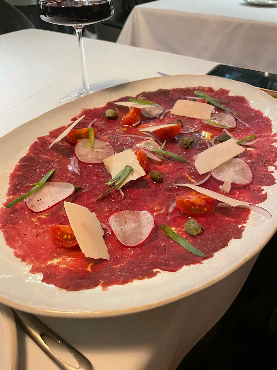 菜单基于现代意大利料理理念,但不过分厚重。项目与 William Lamberti 相关,因此核心逻辑清晰:优质食材、精准酱汁与细致技法。菜单中海鲜占比很高,并以“生食开场”为特色(crudo、鞑靼、carpaccio、ceviche),之后自然过渡到意面与搭配鱼类、时令蔬菜和香草的热菜。常见用餐方式是“冷前菜 + 意面 + 主菜”:例如布拉塔或轻盈开胃菜,随后海鲜意面,再到一道鱼类主菜。菜单通常按季节更新,因此建议关注当季菜品,而非固定不变的“招牌菜”。
