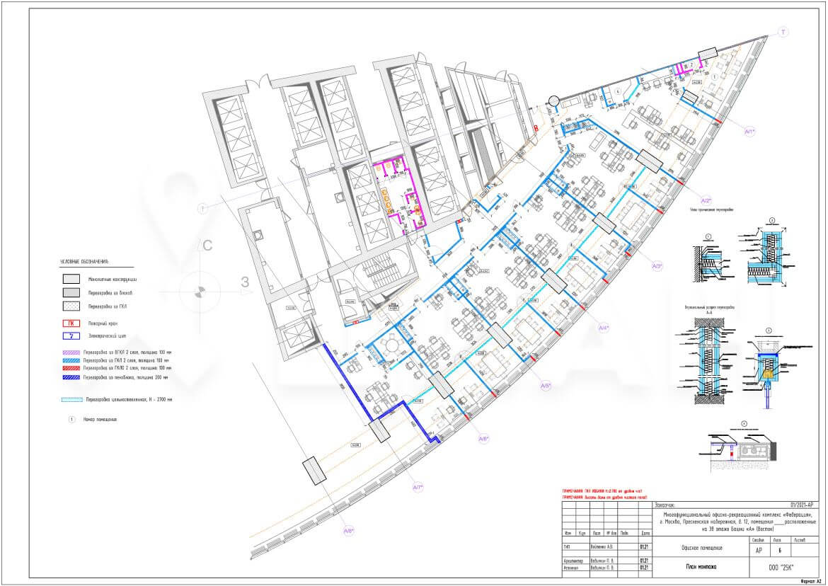 位于联邦东区综合大楼 38 层的办公室面积为 733 平方米,采用现代风格的设计师装修,现出租,租金为 1,400,000 卢布。