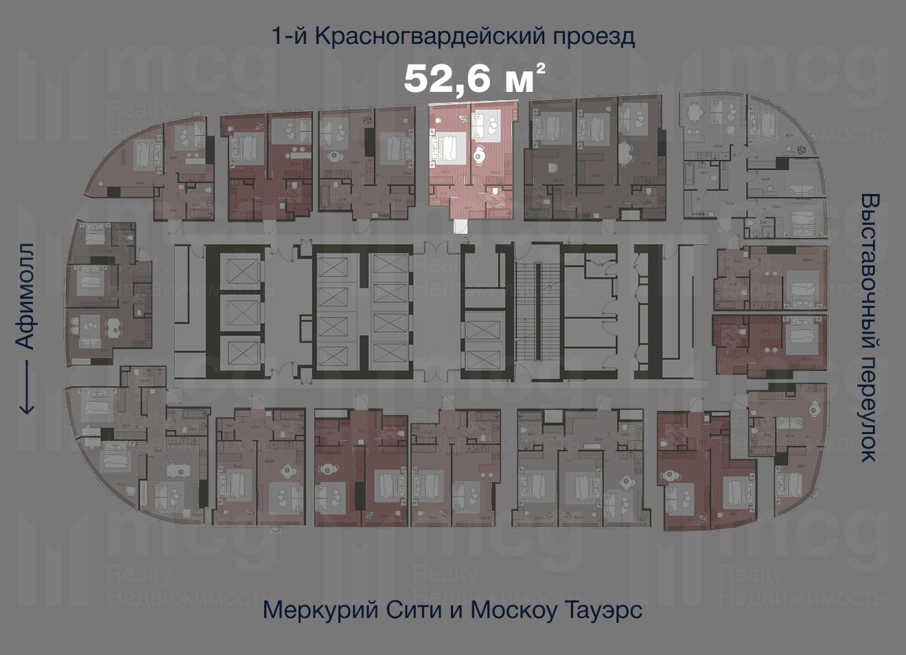 莫斯科市One Tower 52.6 平方米两室公寓出售 — 高档,正在施工中