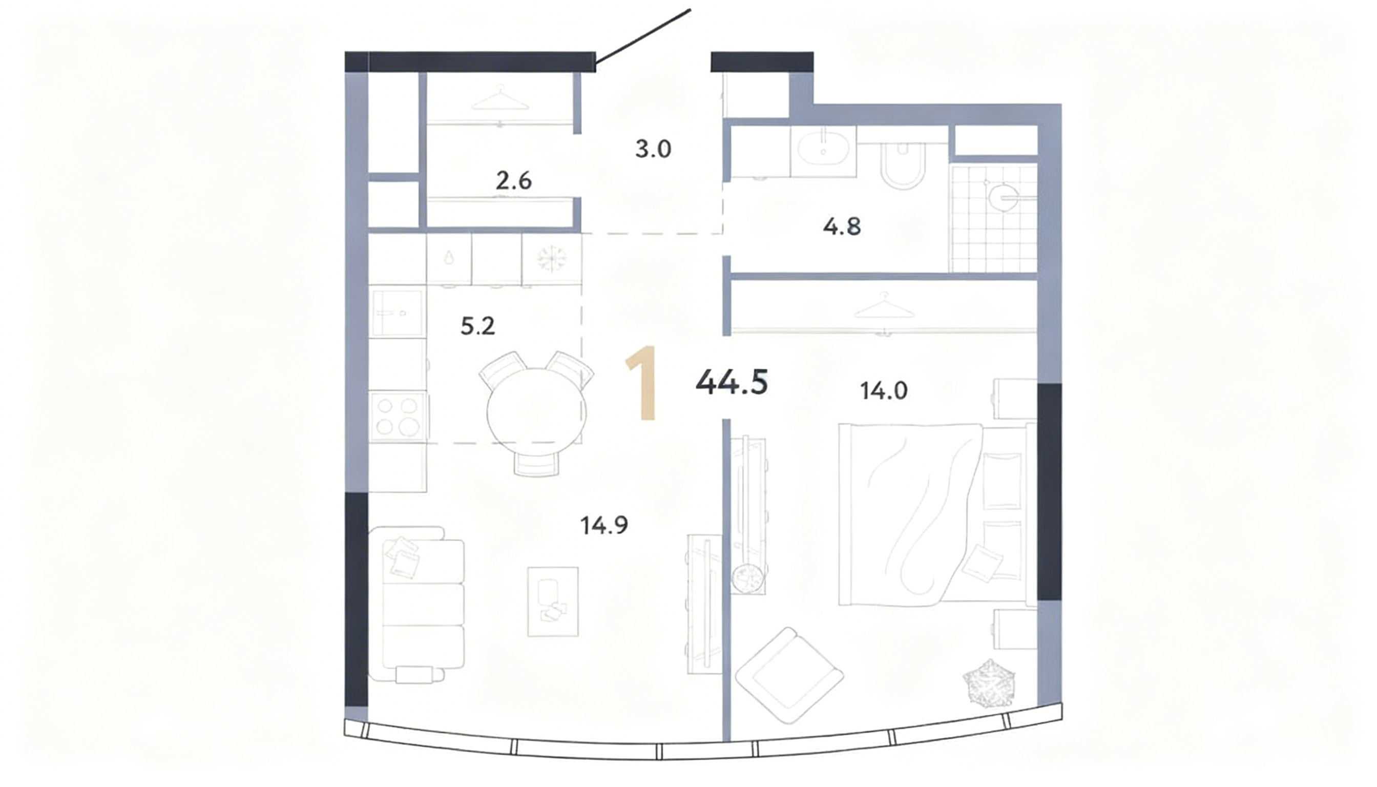 - 面积:44.5 m²