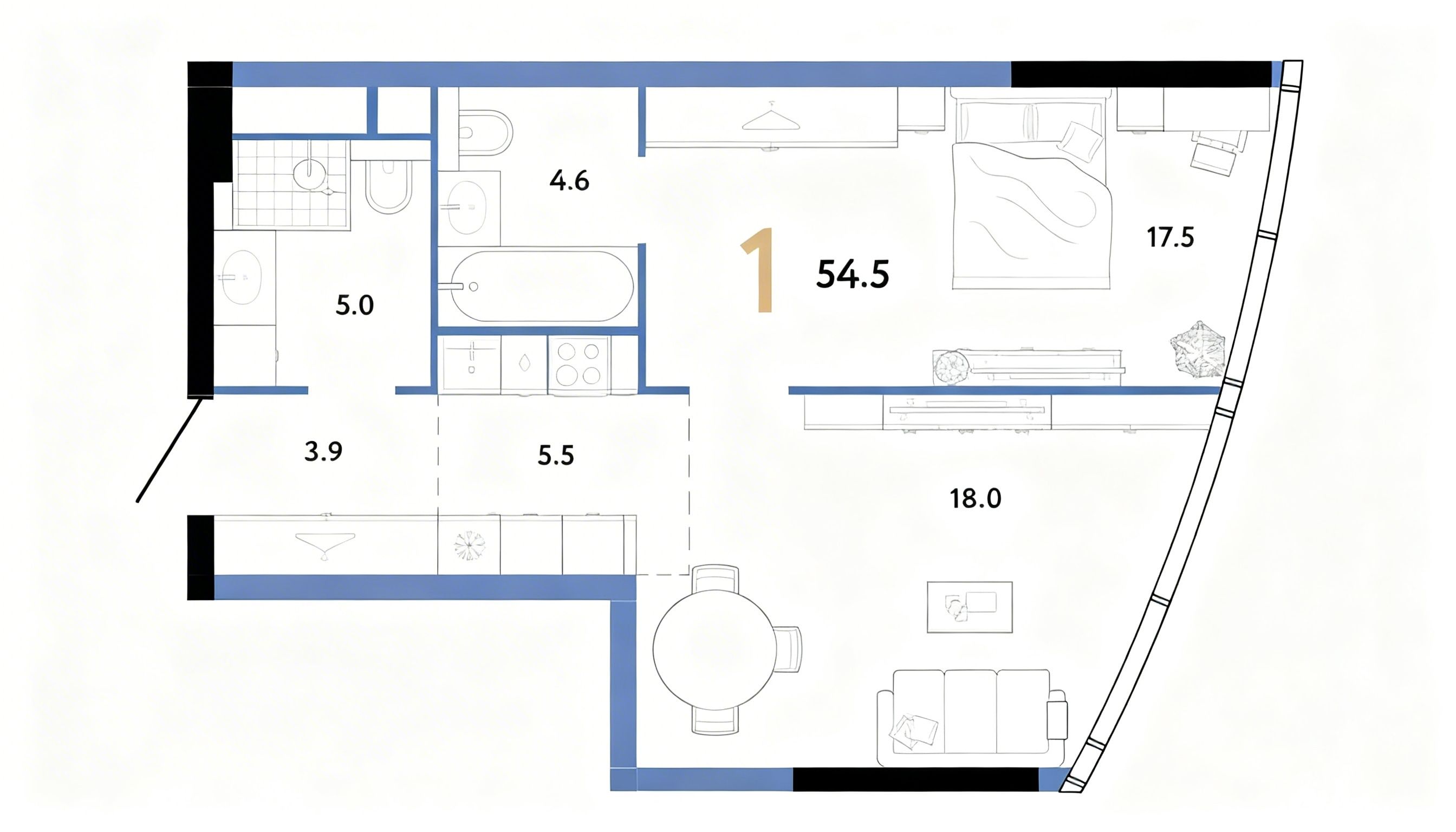 - 面积:54.5 m2