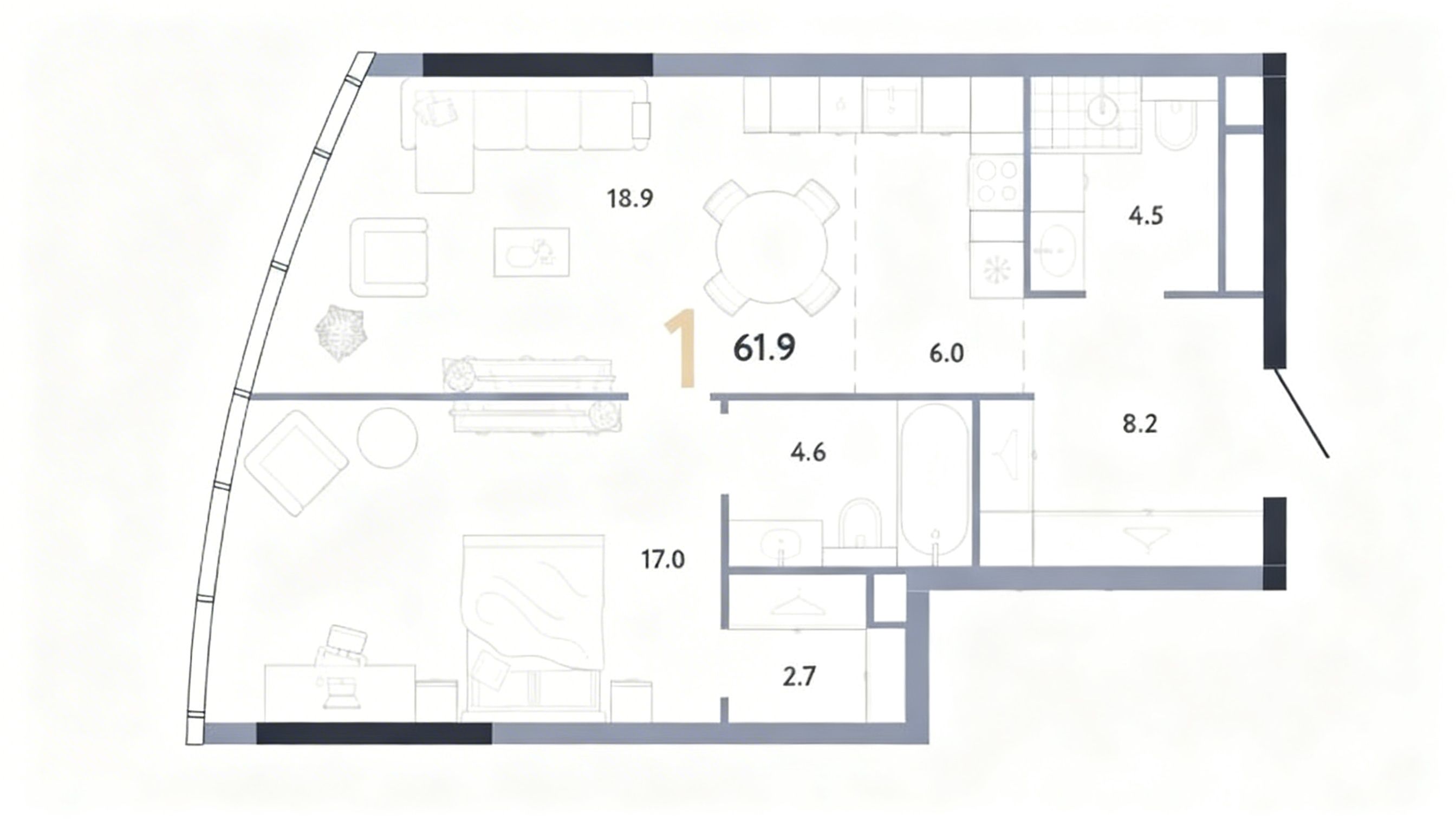 - 面积:61.9 m2