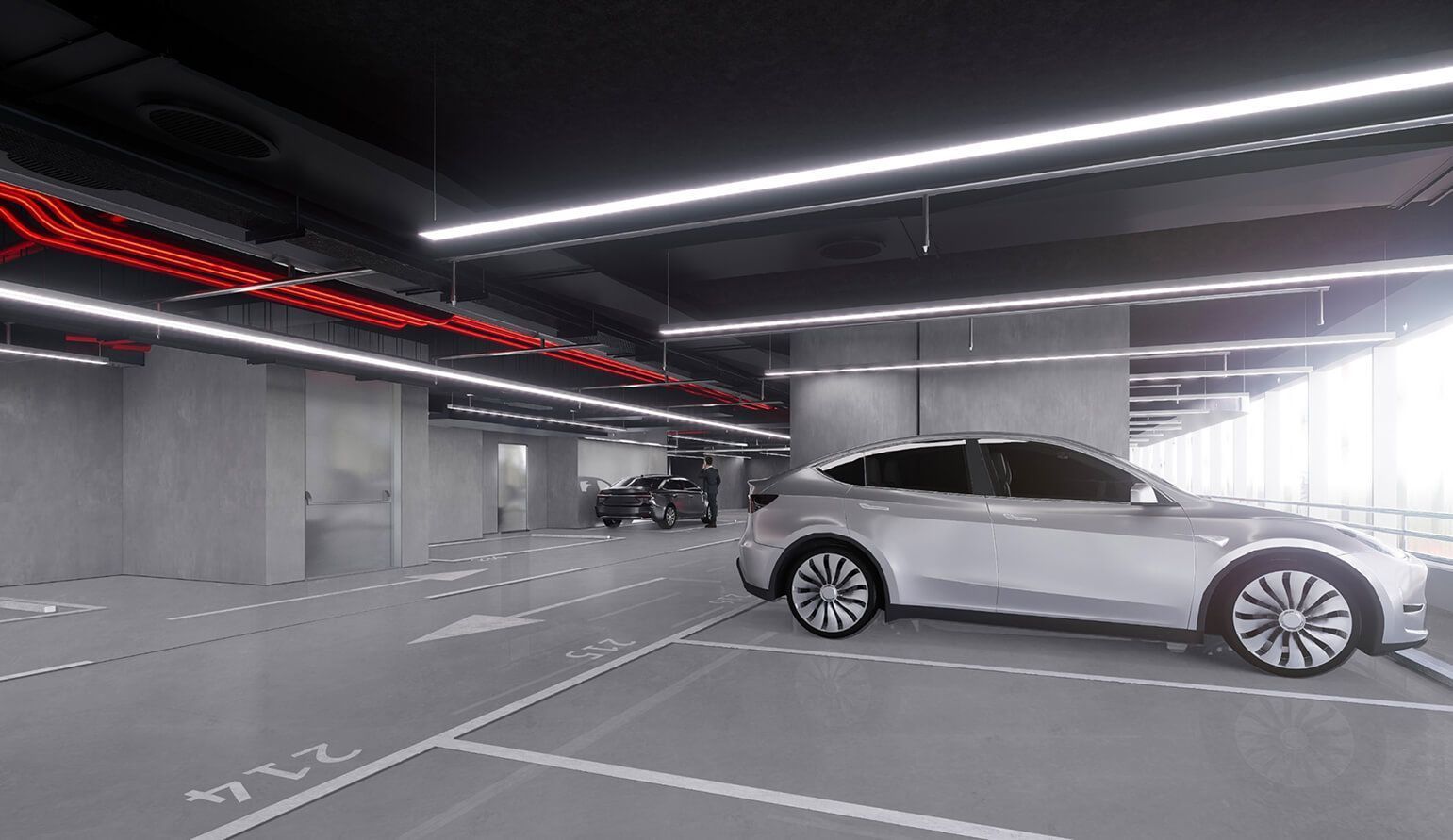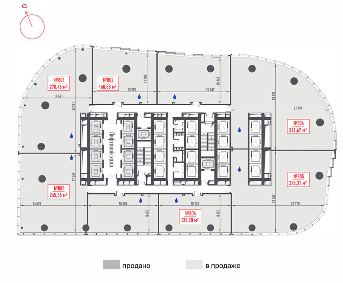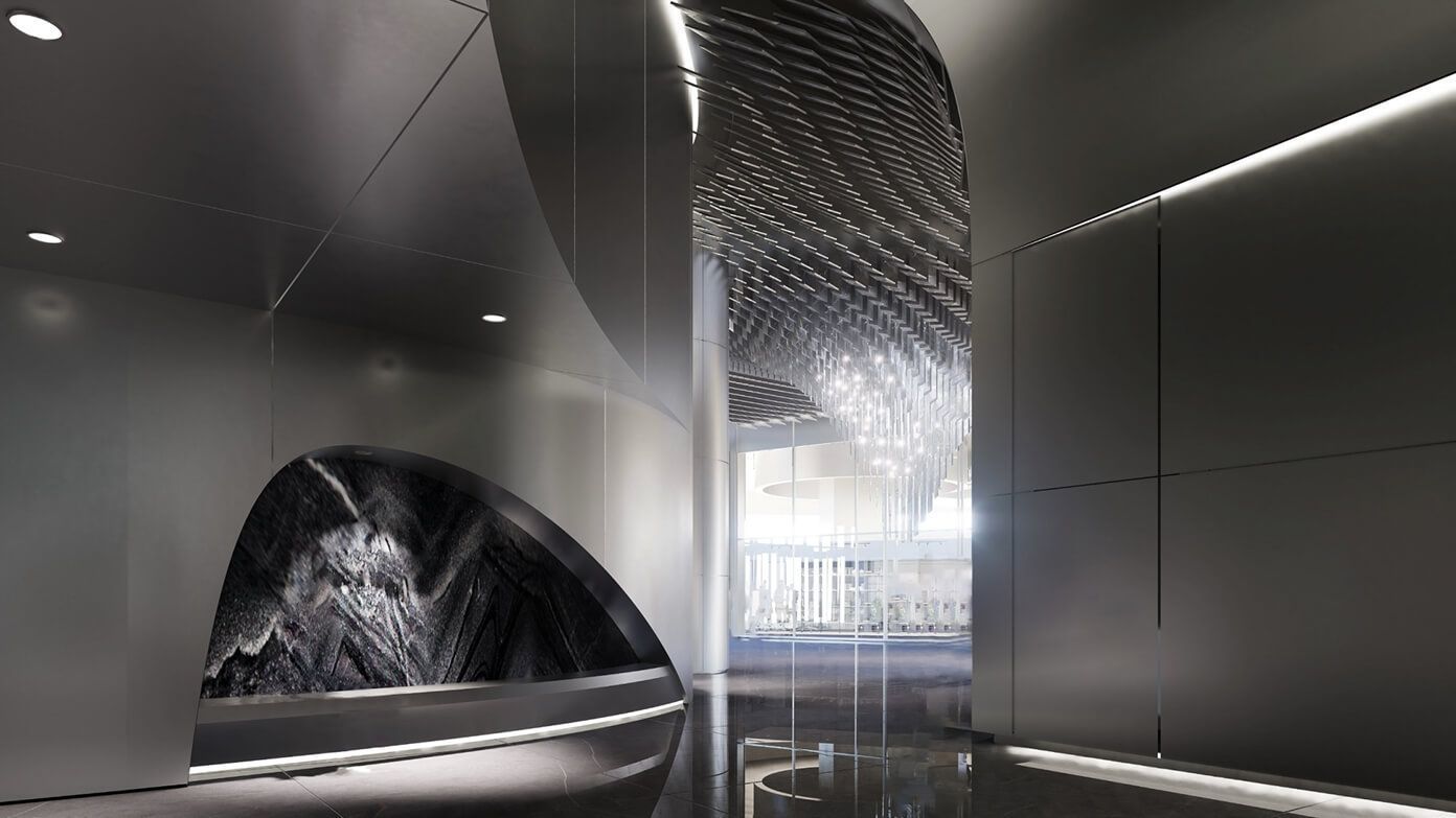 电梯、控制和安保。该摩天大楼将配备速度高达 8 米/秒的双层电梯和智能交通管理系统。气候控制、照明、门禁和库存管理将集成到数字平台。租户可以通过移动应用程序预订会议室、呼叫电梯和进行出入管理。混合结构、紧急电梯、宽敞的疏散楼梯以及全天候视频监控将在确保安全性的同时,兼顾舒适度。