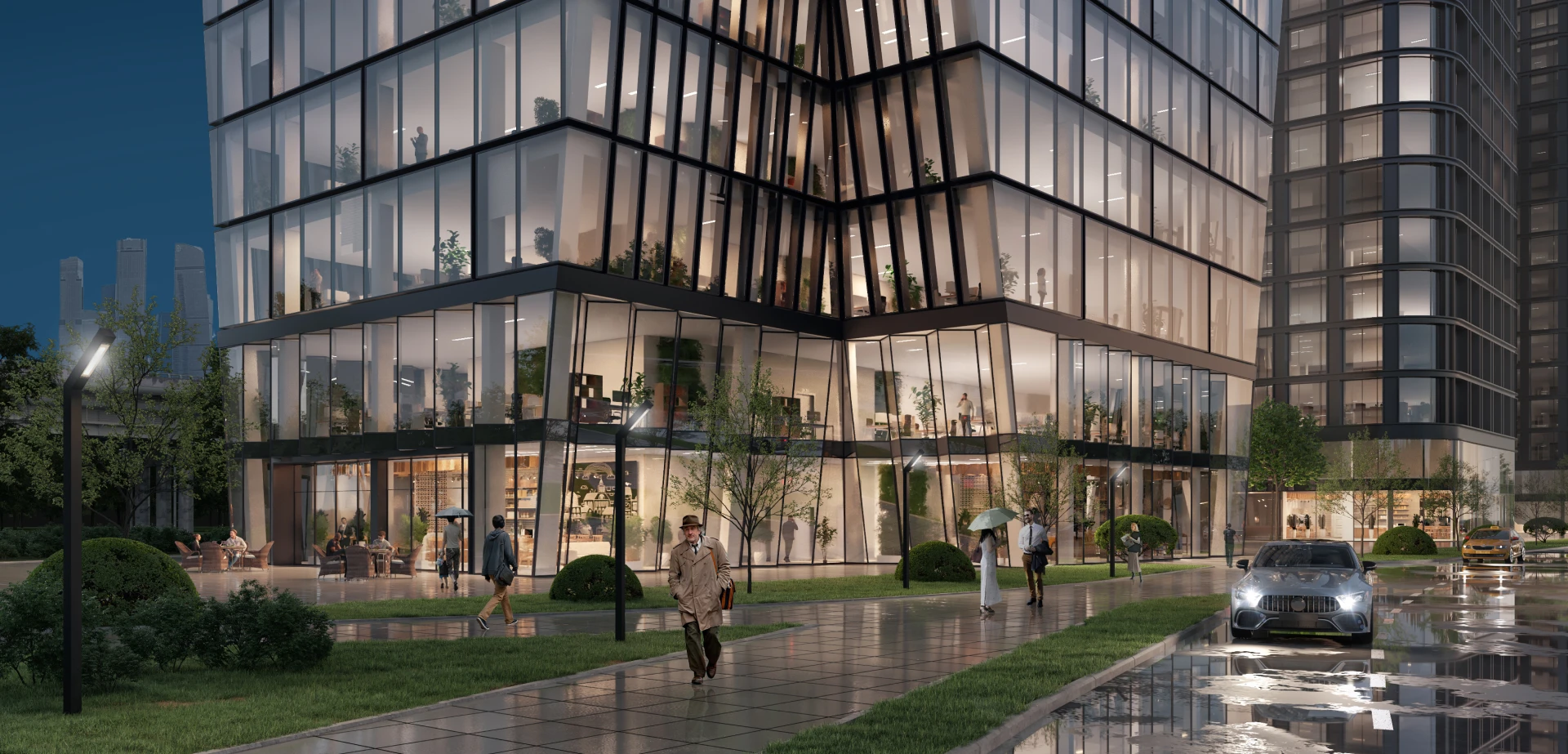 Light City 的建筑理念充满现代感:玻璃和金属立面搭配动感线条,营造出令人印象深刻的外观。立面上高耸透明的结构营造出光影交织的氛围,凸显了综合体的高端地位。该项目由欧洲建筑设计公司(ATP TLP 与 M.A.M. 合作)开发,融合了最顶尖的办公标准。办公楼将配备全景落地窗,可饱览城市景观(例如莫斯科城)。底层设有醒目的主入口,并被规划为公共空间:商店、咖啡馆、会议室、休息区和共享办公空间。建筑周围规划了景观休闲区:小型公园、广场和步道,供综合体的员工和宾客使用。Light City 的新建筑以精致的大厅为亮点,大厅拥有挑高的天花板和时尚的装饰(包括现代化的工程解决方案)。
