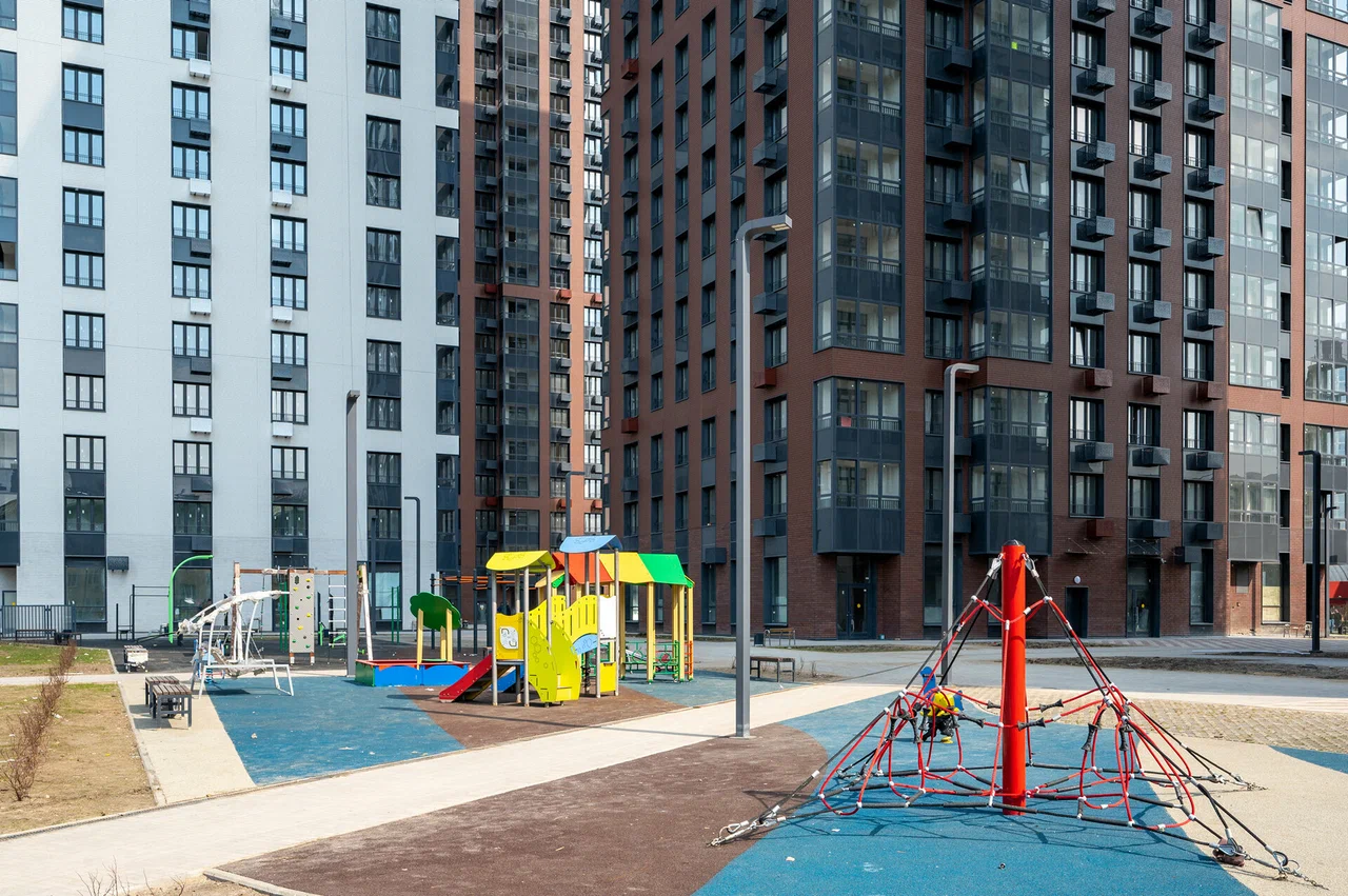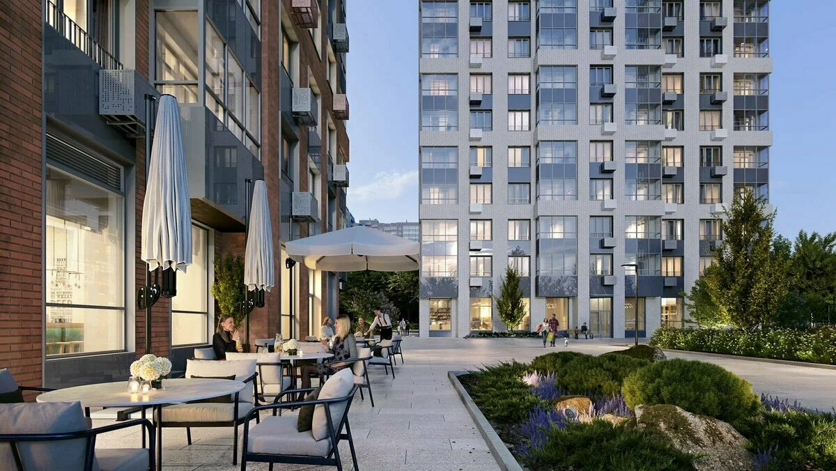 庭院内禁止车辆通行。内部区域禁止车辆通行,并划分为多个功能区,供居民休闲娱乐。综合体拥有三个宽敞的游乐场,适合不同年龄段的居民,舒适的步行道以及配备户外健身器材的现代化健身区。此外,还设有一个富有创意的露天共享办公空间,方便人们在清新的空气中舒适地工作。为了方便起见,这里还设有自行车架以及电动汽车和滑板车的快速充电桩。庭院经过精心美化,种植了大型针叶树、落叶树、观赏灌木和花坛,在建筑附近营造出一个舒适的公园。